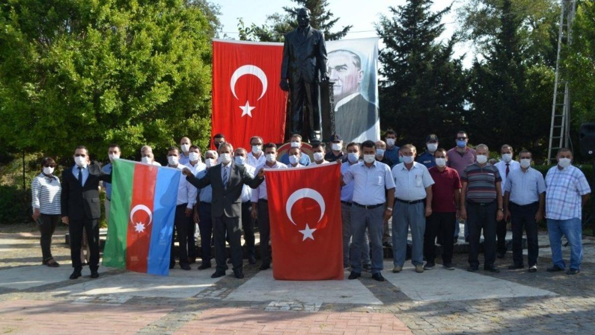 Fidan, konuşmasının sonunda, “Selam olsun Türkiye Cumhuriyeti muhtarlarına, Selam olsun can Azerbaycan’a, Azerbaycan Türkiye iki devlet tek millettir. Ne mutlu Türküm diyene” diyerek, kürsü önünde muhtar arkadaşları ile birlikte Türk ve Azerbaycan bayrakları açtı. Atatürk Anıtı önünde Türk ve Azerbaycan bayrağı ile çekilen toplu resmin ardından tören sona erdi.