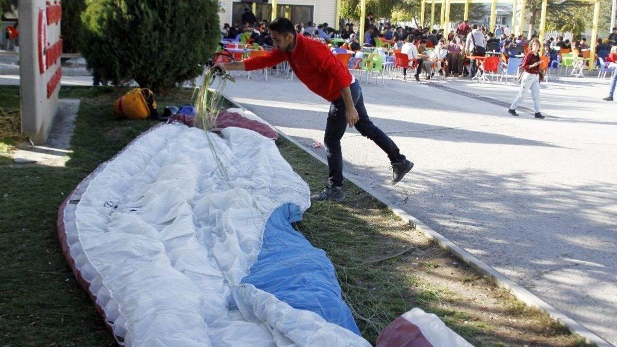Isparta’da yamaç paraşütü sporuyla ilgilenen iki üniversite öğrencisi, okula bu kez paraşütle geldi. Öğrencilerin, kampüse inişi diğer öğrenciler tarafından şaşkınlıkla izlendi.Isparta Süleyman Demirel Üniversitesinde (SDÜ) öğrenim gören adrenalin tutkunu iki öğrenci, hobi olarak yaptıkları yamaç paraşütünü bu kez ulaşım aracı olarak kullandı. İki genç, bu kez derse yetişebilmek için yamaç paraşütüyle okula indi. Adrenalin tutkunu öğrencilerin iniş yaptığı sırada alanda bulunan diğer öğrenciler de onları alkışladı."Farkındalık için bunu yapıyoruz"Süleyman Demirel Üniversitesinin, üzerinde uçuş yapılabilen Türkiye’deki sayılı üniversitelerden olduğunu dile getiren Makine Mühendisliği öğrencisi Emre Erdoğan, "Bugün üniversite içerisinde uçtuk. Okuduğumuz bölümün tam giriş kapısı önüne indik. Bir farkındalık oluşturmak için bunu yapıyoruz. Isparta’da, üniversite içerisinde ve üniversite üzerinde böyle şeyler yapılabiliyor. Üniversitemiz, üzerinde uçuş yapılabilen Türkiye’nin sayılı üniversitelerinden bir tanesi. Bu şekilde biz de bir farklılık olarak, bu sınav döneminde uçuş yaptık ve herkesin bu spora ilgisini çekmiş olduk" dedi.Havadan kampüse inip derse gittilerGenellikle derslerinin yoğun olduğunu ifade eden Erdoğan, "Boş zamanlarımızda bu sporu yapıyoruz. Genellikle derslerden çok fazla bir vaktimiz kalmıyor. Dolayısıyla derse çok az bir zaman kala bazen bu şekilde buraya inip, çantamızı bu şekilde topladıktan sonra hemen derse girebiliyoruz" diye konuştu.Eğitim ve turistik uçuş da yapıyorlarYaptıkları spor vasıtasıyla, aynı zamanda ücretli uçuş imkanı da sunduklarını belirten Erdoğan, bu spora ilgisi ve merakı bulunanlara da eğitim verebildiklerini söyledi. Isparta’da genellikle Ayazmana, Eğirdir ve Atabey gibi yerlerde uçuş yapabildiklerini kaydeden Erdoğan, eğitim dışında turistik olarak da bu tür uçuşları gerçekleştirdiklerini dile getirdi."Yoğun derslerimizden fırsat buldukça uçuyoruz"Emre Erdoğan’ın aynı bölümde okuyan ve aynı evi paylaştığı arkadaşı Samed Özata ise, yoğun geçen derslerden fırsat buldukları zamanlarda yamaç paraşütüyle uçuş yaptıklarını anlattı.SDÜ Makine Mühendisliği öğrencisi Samed Özata, "Şu anda Türkiye’nin en yaşanabilir şehri Isparta’dayız ama okulumuzda genellikle derslerimiz yoğun geçiyor. Okulumuzdan çok fazla boş vaktimiz kalmadığı için böyle en ufak bulduğumuz arada uçmaya çalışıyoruz. Mesela bugün derse yetişmek için uçarak geldik. Boş zamanlarımızda ve hafta sonlarında, ders çalışmadığımız dönemlerde şehir dışına çıkıyoruz, insanları uçuyoruz ve eğitimler veriyoruz" şeklinde konuştu."Okuduğumuz fakültenin önüne indik ve dersimize girdik"Hava şartları da uygun olunca ders öncesi uçmaya karar verdiklerini aktaran Özata, "Bugün çok uçmak istiyorduk. Sabahtan hava durumuna baktık ve uygun olduğunu gördük. Dersimiz de vardı ama bulduğumuz bu fırsatı değerlendirdik. Ders saatimiz geldiğinde de okulda fakültemizin kapı girişine indik ve dersimize girdik" dedi.