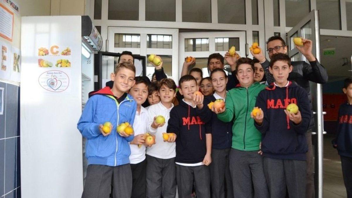 Balıkesir’in Ayvalık ilçesinde; Mehmet Akif Ersoy Ortaokulu öğrencileri teneffüslerde meyve yiyerek, hem vitamin depoluyor, hem de dürüstlüğü öğreniyorlar.Okul idaresinin başlattığı proje ile öğrencilerin hem sağlıklı beslenmesi, hem de doğruluk ve dürüstlük gibi duygularının geliştirilmesinin hedeflendiği belirtiliyor.Milli Eğitim Bakanlığı ile Sağlık Bakanlığı tarafından yurt genelinde 3 yıldan bu yana sürdürülen ‘Beslenme Dostu Okul Projesi ‘ kapsamında öğrencilerin beslenme alışkanlıklarını değiştirmek isteyen ve bu yönde bir ekip oluşturan okul idaresi, oluşturulan meyve dolabı ile ilk adımı attı.Okul girişine konulan meyve dolabının çeşitli mevsim meyveleri ile doldurulmasıyla başlayan projede, raflardan istediği meyveyi seçen öğrenciler, yedikleri meyvenin ücretini dolabın yanındaki kumbaraya atıyor.Hiçbir kamera ve öğretmen tarafından takip edilmeyen öğrenciler, böylece hem sağlıklı beslenme alışkanlıkları kazanırken hem de tükettiği ürünün bedelini ödemeyi, doğruluğu ve dürüstlüğü öğreniyor.İlk teneffüsten itibaren dolap önünde kuyruk olan öğrencilerin bu uygulamadan son derece mutlu oldukları gözleniyor. Günde ortalama 40 kg meyvenin tüketildiği okulda, bazı öğrencilerin birbirlerine meyve ısmarlaması, bazılarının ise paralarını birleştirip meyve alıp paylaşmaları, parası olmayan öğrencilerin de istediği meyveyi alıp ertesi gün kumbaraya ödünç aldığı meyvenin parasını atması ilginç görüntüleri de beraberinde getiriyor.İlginç bir eğitim projesiProjenin amacının hem öğrencilere sağlıklı beslenme alternatifleri sunarken hem de dürüstlük duygusunu ve kendilerine emanet edilen bir dolabı koruma sorumluluğunu geliştirmek gibi bir kaç amacının olduğunu belirten Okulun Sosyal Bilgiler Öğretmeni Erhan Çiftçi; “Biz öğretmen arkadaşlarla birlikte oluşturduğumuz havuzda biriktirdiğimiz paralarla meyve alıp yiyorduk. Sonrada öğrencilerimizin sağlıksız beslendiğini gördüğümüzde, onlara da böyle bir alternatif sunmak istedik. Bu projeyi her beraber başlattık. Bununla ilgili bir komisyon oluşturduk arkadaşlarımız ve idarecilerimizle. Proje geliştirdik, fikirlerimizi birleştirdik ve ortaya böyle bir sonuç çıktı. Şimdi çocuklar, teneffüs saatlerinde bu dolaptan istedikleri meyveleri seçiyorlar. Dolabın hemen yanındaki kumbaraya parasını atıyorlar. Çocuğun o an için parası yoksa gelip dolaptan istediği meyveyi alıyor. Bir başka gün getirebiliyor parasını. Çocukların birbirlerine meyve alıp ısmarladıklarını yada paralarını birleştirip ortaklaşa meyve aldıklarını gözlemliyoruz. Tabi bu durum ise pek çok güzel duyguyu pekiştirdiği için biz eğitimcileri hoşnut ediyor. Burada bu sayede pek çok olumlu duygu birlikte yaşanıyor. Sadece görünen kısmıyla değil, arkasında çok güzel duygular var bunun” dedi.Öğrencilere güveniyorlarOkulun Müdür Yardımcısı Mustafa Tahta ise; “Okul dediğimiz yer sadece dört duvar arasında yapılmaktan çıkmış durumda. Biz de bu kapsamda, ‘Dürüstlük Projesi’ olarak da nitelediğimiz projemizle öğrencilerimize mevsim meyvelerini yıkayıp, hazırladığımız dolaba bu meyveleri koyuyoruz. Bu meyvelerin en tazesini buluyoruz. Buna karşın da öğrencilerimize bu meyveleri çok cüzi bir para karşılığında veriyoruz. Bu uygulamayla velilerimizden çok olumlu tepkiler aldık. Hatta veliler, dolabı doldurup, öğrencilerin her gün bu meyveleri yemelerini sağlamayı teklif ettiler. Öğrencilerimizin bu meyveleri alıp tüketirken hiçbir denetim yada kontrol yapmıyoruz. Biz öğrencilerimize güveniyoruz. Burada biz işin maddi boyutunda değiliz. Bizim için bu işin sürekliliği önemli. Zaten çoğunlukla kumbarada toplanan paralar koyduğumuz meyvelerin parasını karşılamıyor. Gerisini biz öğretmenler karşılıyoruz. Ama bizi asıl mutlu eden öğrencilerimizin dürüst davranmaları. Onlara güvendiğimiz için de onlar bizim güvenimizi boşa çıkarmıyorlar. Sürekli olarak dolaptan aldıkları meyvelerin parasını kumbaraya atıyorlar. Zaten bizde meyve dolabını okulumuzun güvenlik kameralarının hiç görmediği bir noktaya koyduk. Hiçbir zaman da dolabı hiçbir öğretmenimiz kontrol etmiyor. Çünkü öğrencilerimiz şunu çok iyi biliyorlar; eğer kumbaraya para atılmayacak olursa, bunun devamlılığı olmayacak ve uygulama devam etmeyecek. Öğrencilerimiz de bu güzel uygulamanın sürmesi için bu küçük ücreti ödüyorlar” diye konuştu.Öğrenciler memnunÖğrencilerden; Deniz Uzun, İlteriş Kağan Perinçekli, Derya Çalık, Alperen Adıgüzel ve Ayşenur Yazıcıoğlu da uygulamadan duydukları memnuniyeti ifade ederek, söz konusu projenin diğer okullara örnek olmasını dilediler.