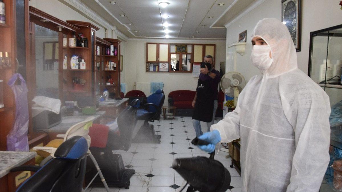 Burdur’da korona virüsle mücadele kapsamında kuaför, berber ve güzellik salonları dezenfekte edildi.