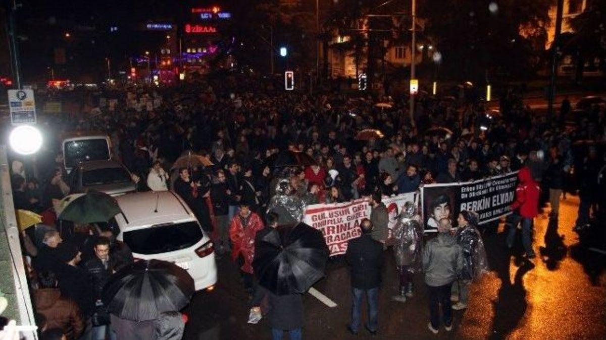 Bursa’da, Gezi Parkı olayları sırasında yaralanan ve bugün hayatını kaybeden Berkin Elvan için eylem yapan gruba polis müdahale etti.Akşam saatlerinde binlerce kişi İstanbul Taksim Gezi Parkı olayları sırasında yaralanan ve bugün hayatını kaybeden Berkin Elvan’ın ölümünü protesto etmek için Setbaşı Mahfel önünde toplanarak, Şehreküstü Meydanı’ndaki AK Parti İl Başkanlığına doğru yürüyüşe geçti. Yürüyüşe Nilüfer’de tiyatro gösterisi olan ve gösteriyi Berkin Elvan’ın ölümü üzerine iptal eden ünlü tiyatrocu Ferhan Şensoy da katıldı. Yürüyüş esnasında, eylemcilere destek için gelen Atatürk Caddesi’ne gelen Halkların Demokratik Partisi (HDP) seçim aracı, eylemcilerin protestosuna maruz kaldı. Bunun üzerine seçim aracı olay yerinden uzaklaştı. Binlerce kişi protestolar eşliğinde Atatürk Caddesi’nden yürüyerek Şehre Küstü Meydanı’ndaki AK Parti Bursa İl Başkanlığı önüne geldiler. Grubu Bursa Emniyet Müdürlüğü Çevik Kuvvet Şube Müdürlüğü ekipleri ve Toplumsal Müdahele Aracı (TOMA) karşıladı.Bu esnada göstericilerin TOMA’lara tepki göstermesi üzerine araçlar geri çekildi. Bazı eylemcilerin TOMA’yı tekmeleyerek taş attıkları görüldü. Daha sonra eylemciler, sloganlar atıp AK Parti Bursa İl Başkanlığı önünde grup oturma eylemi yaparak protestolarını sürdürdü.EYLEMCİLER PARTİ BİNASINI TAŞLADIEylemciler arasından bazı kişiler parti binasına taş attı. Polisin tüm uyarılarına rağmen eylemciler taş atmaya devam edince polis müdahalesi geldi. TOMA ile eylemcilerin üzerine su sıkıldı. Çevik kuvvet polisleri de biber gazı sıkarak eylemcilere müdahale etti. Grup ara sokaklara dağıldı. Polis ekipleri ara sokaklarda eylemcileri bir süre kovaladı. Olaylarla ilgili çok sayıda kişinin gözaltına alındığı bildirildi.Ayrıca eylemcilerin yollarda çöpleri yere attığı ve trafik lambalarına zarar verdiği görüldü.