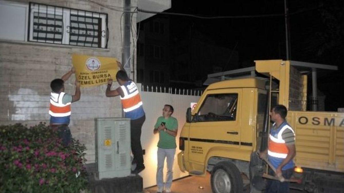 Bursa’nın Osmangazi ilçesinde Fethullahçı Terör Örgütüne yönelik yürütülen soruşturma kapsamında terör örgütü ile bağlantılı olduğu belirlenen ve kapatma kararı alınan özel 2 lisenin tabelaları sökülerek indirildi.15 Temmuz darbe girişiminin ardından tüm Türkiye 9 gündür tek yürek olmuş darbecilere karşı sabahın ilk ışıklarına kadar demokrasi nöbeti tutarken, Fetullahçı Terör Örgütü’ne ile bağlantılı oldukları belirlenen kurum ve kuruluşlara yönelik operasyonlar da aralıksız sürdürülüyor. Darbe girişiminin ardından uygulamaya konulan OHAL’de yayınlanan kanun hükmünde kararname kapsamında Türkiye genelinde FETÖ terör örgütü ile bağlantısı tespit edilen 1043 özel öğretim kurumu kapatıldı. Yürütülen operasyonlar kapsamında ‘Gülen Cemaati’ okulları listesinde yer alan Osmangazi İlçesi sınırları içerisindeki Özel Bursa İpekşehir Temel Lisesi ile Özel Bursa Temel Lisesi de Bursa İl Milli Eğitim Müdürlüğü tarafından mühürlendi. Kapatılan iki okulun tabelaları Osmangazi Belediyesi tarafından gece saat 24.00’da sökülerek indirildi. Sökülen tabelaların yerine Türk bayrakları asıldı.Okul tabelalarının yerine Türk bayraklarıİlk olarak Hacılar Mahallesi Konakardı Sokakta bulunan eski Tan Dershanesi olarak bilinen binada faaliyet gösteren Özel Bursa İpekşehir Temel Lisesine giden belediye ekipleri, okulun tabelasını sökerek indirdi. Ardından Haşim İşcan Caddesi Medical Park Hastanesi yanında bulunan Özel Bursa İpekşehir Temel Lisesine gelen ekiplere, Fomara Meydanı’nda demokrasi nöbeti için toplanan vatandaşlar tezahüratlarla destek verdi. Cumhurbaşkanı Recep Tayyip Erdoğan’ın çağrısı ile meydanı dolduran ve 9 gündür demokrasi nöbeti tutan vatandaşlar, Gülen ve darbeciler aleyhine sloganlar attı.“Vatan hainlerine aramızda yer yok”Osmangazi Belediye Başkanı Mustafa Dündar, “Millet iradesini yok sayarak darbe ile yönetimi ele geçirmek isteyen bu hain yapıya karşı milletimizin gösterdiği dik duruş, dünyada demokrasi adına benzeri görülmemiş bir mücadele örneğidir. Bizler de, milletimizin bu dik duruşuna, bu örnek mücadelesine gerekli desteği veriyoruz. Devletimizin almış olduğu kapatma karının ardından mühürlenen iki okulun tabelalarını sökerek indirdik. Bundan sonra da alınacak benzer kararlarla ilgili uygulamalarımızı derhal yerine getirerek, bu hainlerin aramızda yaşamasına asla izin vermeyeceğiz” dedi.
