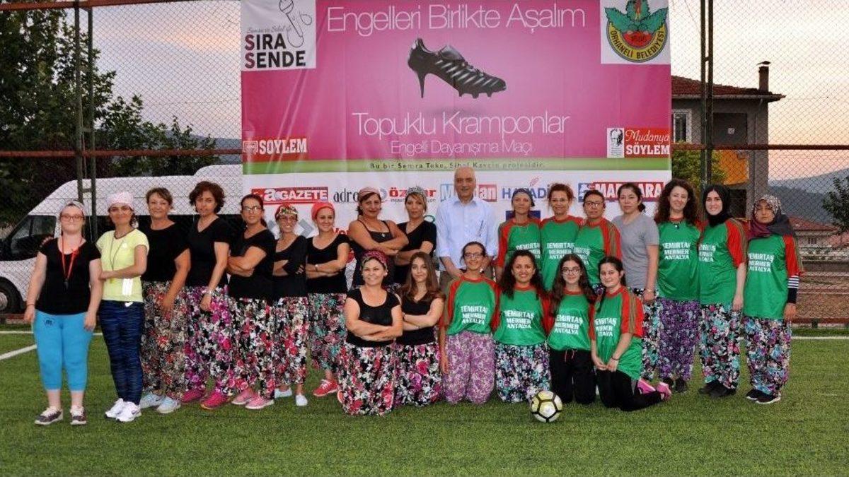 Bursa’da Orhaneli Belediyesi’nin ev sahipliğinde engellilere atölye kurmak için ilçe kadınları sahaya indi. Her iki takımın oyuncularının yöreye özgü şalvarlarla çıktığı maçın galibi 6-2 skorla Orhanelili kadınlar oldu.İlçe halkının yoğun ilgi gösterdiği maç, belediyeye ait halı sahada düzenlendi. Orhaneli Belediye Başkanı İrfan Tatlıoğlu’nun başlama vuruşu yaptığı maçta Orhanelili kadınlar ile Topuklu Kramponlar takımı oyuncuları kıyasıya mücadele ederken, izleyenler tarafından büyük alkış aldılar. Büyük mücadelenin yaşandığı karşılaşmanın galibi ise Orhanelili kadınlar oldu. Maç sonrası kupalarını Orhaneli Belediye Başkanı İrfan Tatlıoğlu’nun elinden alan ev sahibi takım, birincilik kupasını konuk takıma hediye etti. Orhaneli Belediyesi olarak sosyal projelere büyük önem verdiklerini söyleyen Belediye Başkanı İrfan Tatlıoğlu, engellilere atölye kurmak için düzenledikleri bu organizasyona katılan, projenin öncüleri Semra Teke, Sibel Kavçin başta olmak üzere iki takım oyuncularına teşekkür etti. Başkan Tatlıoğlu, “Orhanelili ve Bursalı kadınlarımızı sahada gösterdikleri performanslarından dolayı kutluyorum. Çok anlamlı bir projeye imza attılar. Bu karşılaşmadan elde edilecek gelirle engellilerimize atölye kurmayı amaçlıyoruz. Orhaneli Belediyesi olarak sosyal projelerimiz devam edecek” dedi.Projenin öncülerinden Semra Teke ise, Topuklu Kramponlar olarak sosyal yardım projelerine devam edeceklerini belirterek, “Bir sonraki projeyi down sendromlu bireyler yararına ve bu hastalığa dikkat çekmek için yapacağız” diye konuştu.