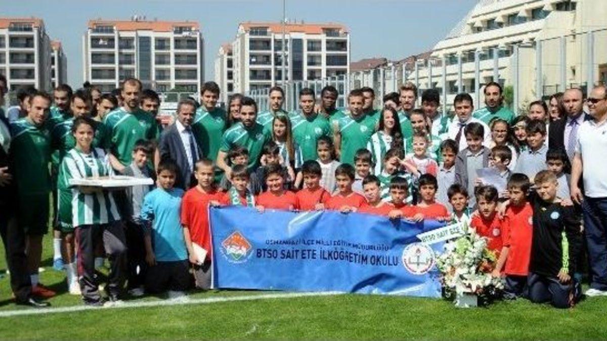 Bursaspor, Spor Toto Süper Lig'in 31. haftasında 25 Nisan Cuma günü deplasmanda oynayacağı Gençlerbirliği maçının hazırlıklarını sürdürdü.Özlüce Tesisleri’nde teknik direktör İrfan Buz, yönetiminde gerçekleştirilen antrenman yaklaşık 1.5 saat sürdü. Antrenmana tedavileri devam eden Sercan Yıldırım ve Renato Civelli’nin yanı sıra U-19 Milli Takımı’nda bulunan Okan Kocuk ve Batuhan Altıntaş katılmadı.. Isınma koşularıyla başlayan antrenman, kontrol pas oyunu ile devam etti. Antrenmanın ikinci bölümünde ise minyatür kaleli oyun oynanırken, son bölümde ise taktik ağırlıklı çift kale maç yapıldı.Öte yandan antrenman öncesinde Bursa Ticaret ve Sanayi Odası (BTSO) Sait Ete Ortaokulu öğrencileri futbolcular ile bir araya geldi. Bol bol hatıra fotoğrafı çektiren minikler, futbolculardan imza almayı da ihmal etmediler. Kaptan İbrahim Öztürk’e çiçek ve baklava ikram eden minikler daha sonra antrenmanın bir bölümünü takip ettiler.