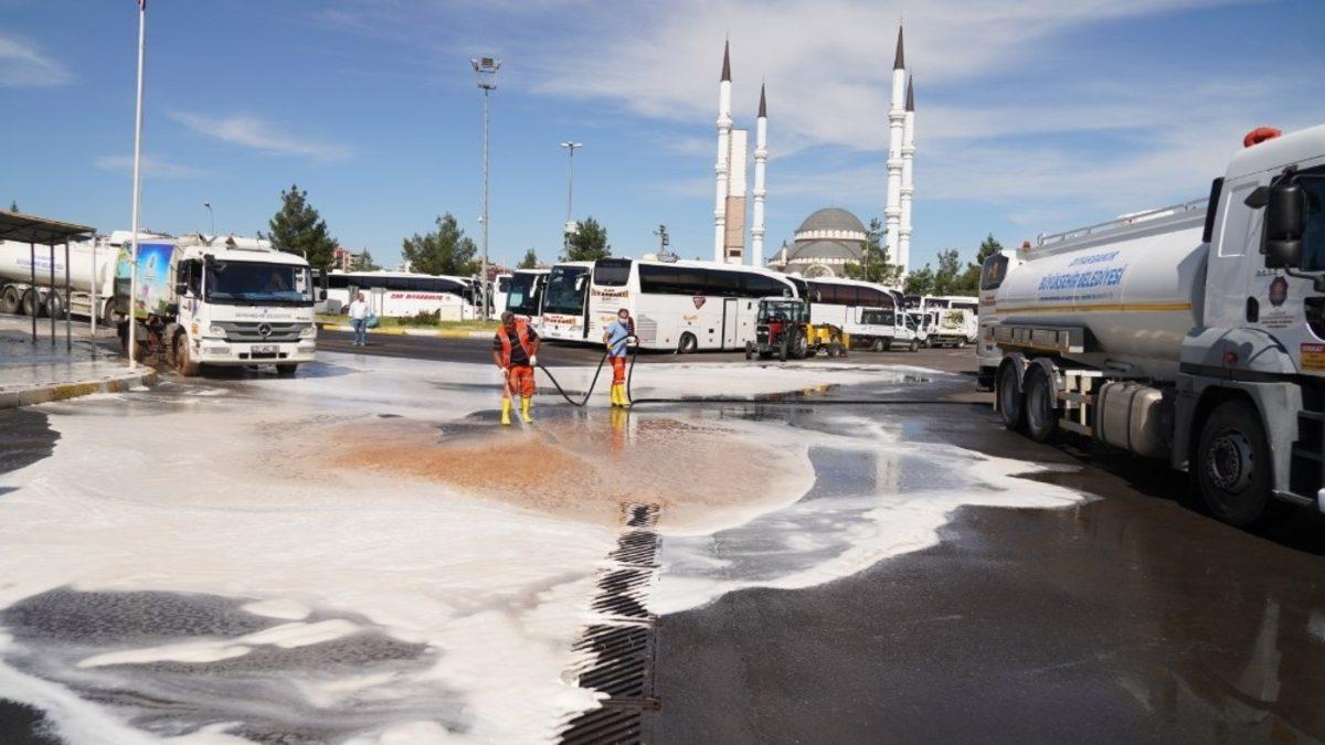 Diyarbakır Büyükşehir Belediyesi, korona virüs salgınıyla ilgili açıklanan normalleşme takvimini göz önünde bulundurarak yarından itibaren araçların yeniden çalışmaya başlayacağı, kentin aynası sayılan Diyarbakır Şehirlerarası Otobüs Terminal İşletmeleri’nde (DİŞTİ) A’dan Z’ye temizlik çalışması yürüttü.