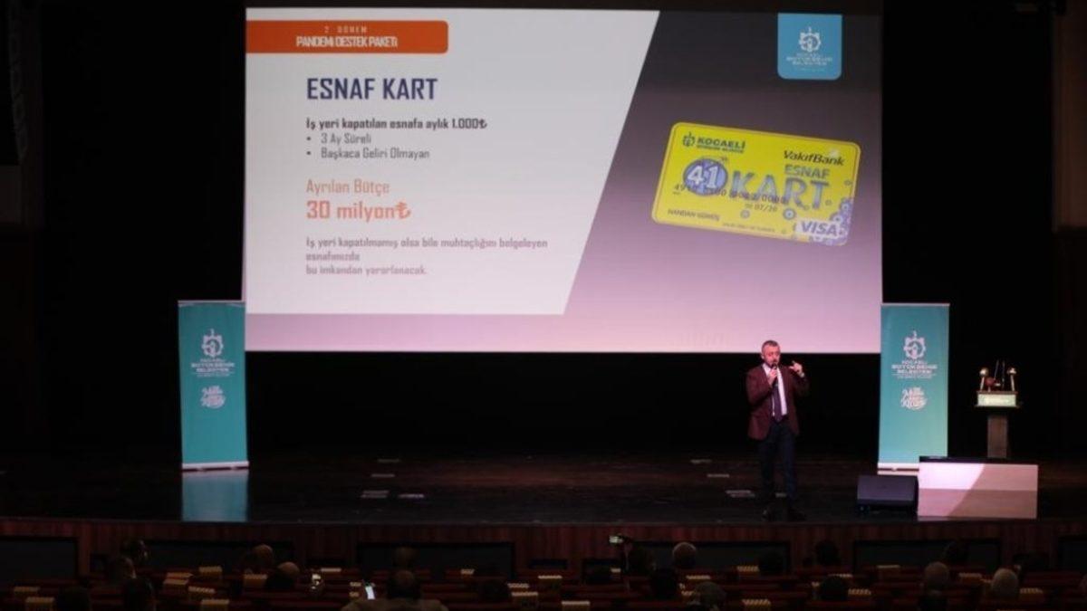 Tüm dünyayı etkisi altına alan korana virüs salgını ekonomiyi de derinden etkiledi. Pandemi sınırlamaları kapsamında pek çok iş kolu kepenk indirmek zorunda kalırken çalışanlar da mağdur oldu. Kocaeli Büyükşehir Belediyesi, 2’inci dönem pandemi destek paketi kapsamında 112 milyonluk destek sunacak. Kocaeli Kongre Merkezi’nde yapılan basın toplantısına Büyükakın’ın yanı sıra siyasi partilerin ve bazı sivil toplum kuruluşların temsilcileri katıldı. Kepenk kapatan ya da işleri iyi gitmeyen esnaflara destek vereceklerini söyleyen Büyükakın, “Sosyal yardım kapsamına alarak desteklemeleri yapıyoruz. 41 Kart’ın formunu esnaf kart olarak düzenledik ve buradan yardımı vereceğiz. İş yeri kapatılan esnafımıza ayda 1000 lira destek vereceğiz. Esnafımızın ilave başka gelirinin olmaması gerekiyor” dedi.
