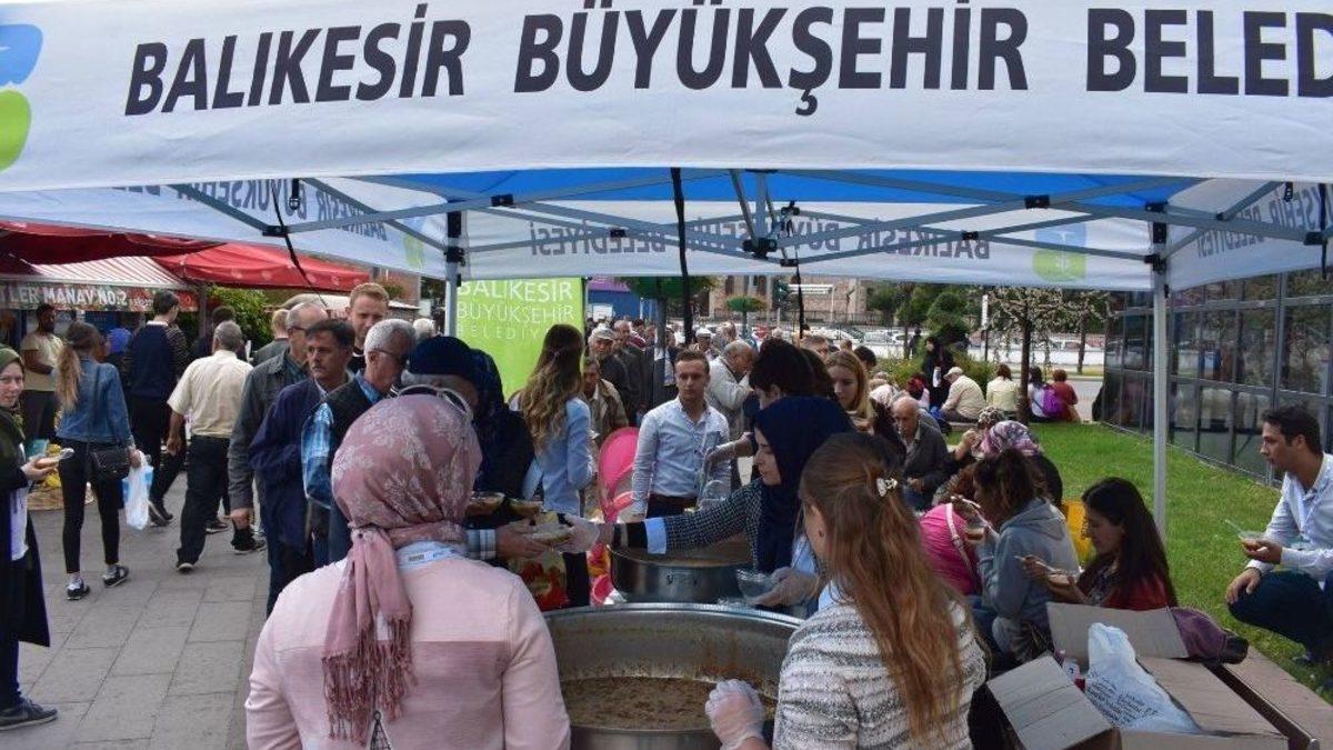 Balıkesir Büyükşehir Belediyesi ’Başkan Sizinle’ ekipleri tarafından düzenlenen aşure hayrına vatandaşlar büyük ilgi gösterdi.Mübarek Muharrem Ayı nedeniyle Balıkesir Büyükşehir Belediyesi Başkan Sizinle ekipleri tarafından aşure hayrı düzenlendi. Ali Hikmet Paşa Meydanı, Toplu Taşıma Merkezi ve 15 Temmuz Demokrasi Meydanında kurulan stantlarda yaklaşık 10 bin kişiye aşure ikramında bulunuldu. Uzun kuyruklar oluşturan vatandaşlar, ikramda bulunan Büyükşehir Belediyesi Başkanı Ahmet Edip Uğur ve belediye ekiplerine teşekkür ettiler.
