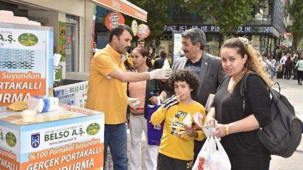 Büyükşehir Belediyesi, Ankaralılara yaz armağanı portakallı dondurma sundu.Büyükşehir Belediyesi BELSO şirketi, hiçbir katkı maddesi içermeyen taze sıkılmış portakal suyundan imal ettiği dondurmayı Ankaralıların beğenisine sunuyor. Yaz kış demeden taze sıkılmış portakal suyu ve diğer meyve sularıyla farklı lezzetleri ucuza doğal vitamin şeklinde sunan BELSO şimdide portakal suyundan imal ettiği dondurma ile Ankaralıların karşısına çıktı.Kızılay ve Ulus civarında 13 satış noktasında BELSO aracıyla vatandaşların taze sıkılmış meyve suyu ihtiyacını karşıladıklarını vurgulayan BELSO yetkilileri, taze sıkılmış portakal suyundan yapılan dondurma makinesinin şu anda sadece Kızılay meydanında tek bir noktada hizmete girdiğini belirtti.Dondurma üretiminde hiçbir katkı maddesi kullanılmadığına dikkat çeken yetkililer, portakallı dondurmanın imalatında sadece taze sıkılmış portakal suyu, süt, vanilya, pancar şekeri ve keçiboynuzu tozu kullanıldığını vurguladı.Dondurma imalatında çoğunlukla maliyeti düşürmek amacıyla süt yerine süt tozu, şeker yerine tatlandırıcı, keçiboynuzu yerine salep kullandığını hatırlatan yetkililer, ürettikleri dondurmanın hiçbir katkı maddesi bulunmaması nedeniyle, taze sıkılmış meyve suyundan sonra sağlıklı dondurmanın da Başkent’teki güvenilir adresi olacaklarını iddia etti.Denenme imalatıyla tek bir noktada portakallı dondurma lezzetini Ankaralılara tanıtmaya başladıklarını ifade eden yetkililer gelecek talep doğrultusunda portakallı dondurma satışın diğer satış noktalarına da yayacaklarını söyledi.