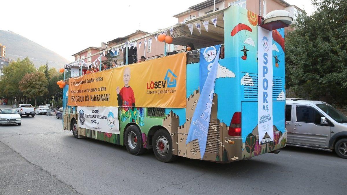 Kayseri Büyükşehir Belediyesi Spor A.Ş. 2-8 Kasım Lösemili Çocuklar Haftası nedeniyle lösemi hastalığı ile mücadele eden çocuklara destek olmak için kentte bir dizi etkinlikler yapıyor. Büyükşehir Belediyesi Spor A.Ş. ile LÖSEV’in işbirliği kapsamında, LÖSEV’in Hayatta umutlu ol sen her zaman , unutma HER ÇOCUK KAHRAMAN! #LÖSEVDEHERÇOCUKKAHRAMAN sloganları ve hashtagleri ile düzenlenen etkinlikler lösemi çocukların mahallelerine neşe kaynağı oldu. Birçok lösemili çocuğun sokağına gidilerek üstü açık otobüs, Bando Takımı ve Spor A.Ş. Etkinlik aracıyla giderek müzik eşliğinde dans gösterileri yapıp, hediyeler veriliyor. Dört gün sürecek olan etkinlik çocukların isteğine göre uzatılabilecek. Çıkılan bu güzel yolun ilk durağı ise kahraman minik Ayşe’nin oturduğu Talas ilçesi, Rüzgar Sokağı oldu. Birbirinden güzel danslar, bando takımı ve birçok etkinlik minik Ayşe’yi çok sevindirdi.