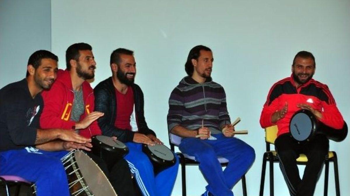 Manisa Büyükşehir Belediyesi Konservatuar eğitmenlerinden Efe Çıraklar ve Bedirhan Diyarbakırlı, Büyükşehir Belediyespor futbolcuları ile ritim terapi grup çalışması yaptı. Birçok profesyonel ve amatör sporcunun kendini hazırlamasında kullandığı bir yöntem olan ritim terapi grup çalışması ile sporcular eğlenceli bir gece geçirdi.Manisa Büyükşehir Belediyespor futbol kulübü oyuncularına yönelik uygulanan ritim terapi grup çalışması, Atatürk Gençlik Merkezi’nde konservatuar eğitmenlerinden Bedirhan Diyarbakırlı ve Efe Çıraklar’ın eğitmenliğinde verildi. Ritim terapi grup çalışmasını, Gençlik ve Spor Şube Müdürü Orhan Haşim Elmalı, Atatürk Gençlik Merkezi Sorumlusu Duygu Karataş ve Büyükşehir Belediyespor Teknik Direktörü Hakan Şapçı ve yetkililer izledi. Sporcuların müsabakalara hazırlanmasında etkili bir yöntem olan ritim terapi grup çalışması, gevşemeyi öğreten, konsantrasyonu geliştiren ve sporcunun iç benlik duygusunu kuvvetlendiren bilinçli bir düşünsel strateji çalışması olması nedeniyle tercih ediliyor. Bu kapsamda Büyükşehir Belediyespor futbol branşındaki oyuncularla yapılan çalışma ile oyuncuların müsabakalara hazırlanırken stres atmasını ve daha uyumlu çalışmalarını sağladıklarını belirten konservatuar eğitmenleri, bu tür çalışmaların düzenli olarak devam edeceğini belirtti. Darbuka, def, davul, bendir, kaşık, tumba ve bongo gibi enstrümanlarla tanışma fırsatı bulan futbolcular, konservatuvar eğitmeni Bedirhan Diyarbakırlı’nın komutlarıyla hem kendi müziklerini yaptılar, hem de eğlenceli bir gece geçirdiler.