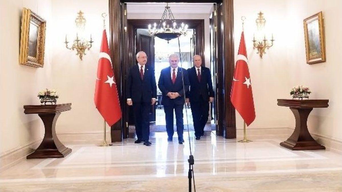 Başbakan Binali Yıldırım, son dönemde artan terör saldırıları nedeniyle CHP Genel Başkanı Kemal Kılıçdaroğlu ve MHP Genel Başkanı Devlet Bahçeli ile bir araya geldi. Gündemin terör olduğu görüşme, yaklaşık 2,5 saat sürdü.Başbakan Binali Yıldırım, CHP Genel Başkanı Kemal Kılıçdaroğlu ve MHP Genel Başkanı Devlet Bahçeli ile Çankaya Köşkü’nde bir araya geldi. Toplantının gündeminde son dönemde artan terör saldırıları vardı. Bunun yanısıra bölgesel gelişmelerin de masaya yatırıldığı görüşme, yaklaşık 2,5 saat sürdü.