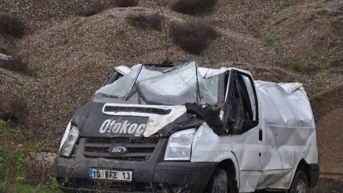 Edinilen bilgiye göre, Yenişehir-İnegöl yolu üzerinde seyreden İsmail Çeğil idaresindeki 16 KFE 13 plakalı kapalı kasa minibüs, önünde giden İbrahim Ersöz’ün kullandığı 16 F 6998 plakalı özel otomobili sollamak isterken yandan çarptı. Çarpışmanın etkisi ile iki aracın sürücüsü de direksiyon hakimiyetini kaybetti. Kontrolden çıkan otomobille minibüs, Boğazköy barajı seti mevkiinde yoldan çıkarak yolun sağındaki şarampole yuvarlandı. 30 metre yüksekliğindeki şarampolden aşağı yuvarlanan her iki araç şarampole düştü. Yan duran iki aracın sürücüsünü de Allah korudu. Özel otomobil sürücüsü emniyet kemeri sayesinde kazayı yara almadan atlatırken, minibüs sürücüsü ise hafif yaralandı. Yaralı minibüs sürücüsü Devlet Hastanesi'ne kaldırıldı. Kazayla alakalı tahkikat sürüyor.