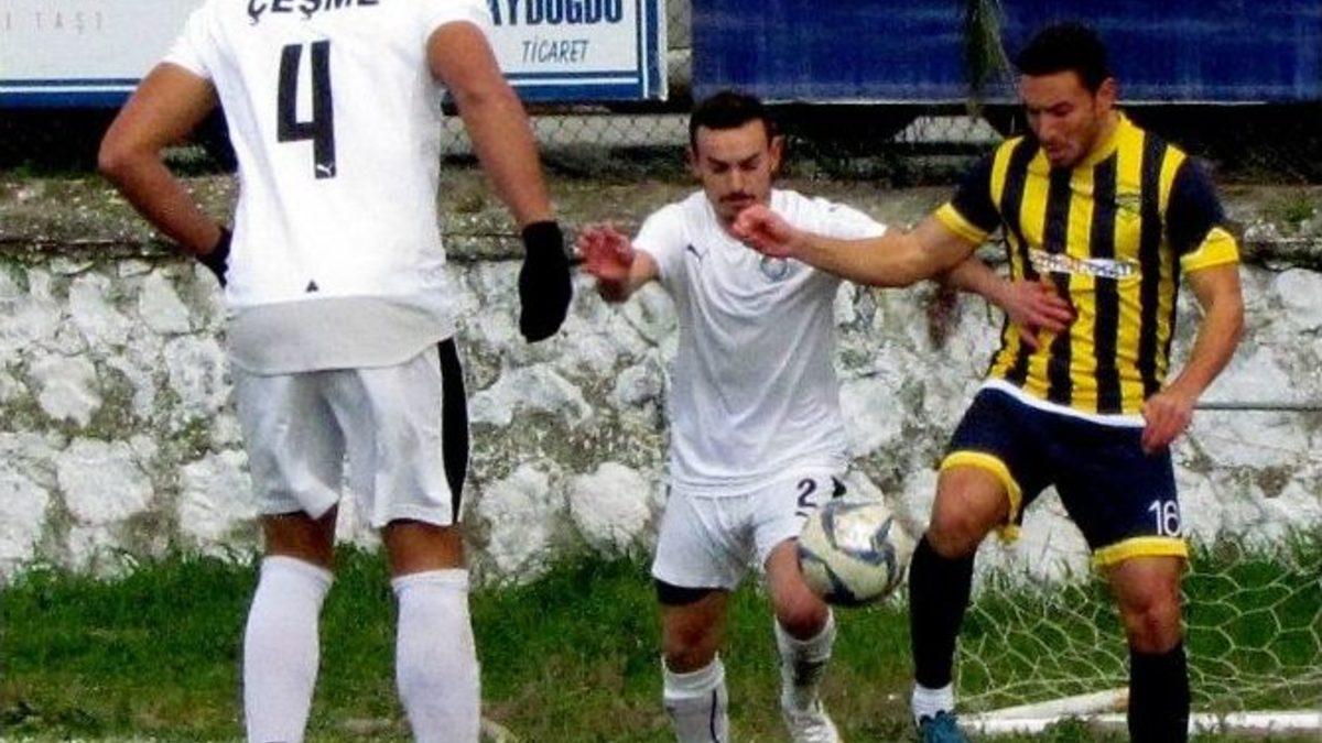 1 kazanan Alaçatıspor, ikinci yarıda da Çeşme Belediyespor’u 1-0 yenmeyi başardı.İzmir’in turistik ilçesi Çeşme’nin iki kardeş takımı Alaçatıspor ve Çeşme Belediyespor’un, Alaçatı 15 Eylül Sahası’nda mücadele ettikleri karşılaşmayı çok sayıda taraftar izledi. Çeşme derbisinin ilk yarısı golsüz biterken, Alaçatıspor’un ikinci yarıda bulduğu gol maçın skorunu da belirledi. Alaçatı ekibinin 1-0 kazandığı karşılaşma yoğun güvenlik önlemleri altında oynanırken, maç olaysız sona erdi.Son düdüğün ardından Alaçatıspor futbolcuları ve taraftarları büyük sevinç yaşadı. Futbolcuların galibiyet coşkusu soyunma odasında da devam etti. Soyunma odasına gelerek futbolcularını kutlayan ve sevinçlerine ortak olan Alaçatıspor Başkanı Namık Kemal Aydoğdu, “Başkan primi ikiye katla” tezahüratıyla karşılandı. Çeşme Belediyespor Başkanı Aydın Cengiz, Alaçatıspor Başkanı Namık Kemal Aydoğdu’yu aldıkları galibiyetten dolayı kutladı.Galibiyetin ardından kısa bir açıklama yapan Başkan Aydoğdu, “İki haftalık bir kötü bir gidişin ardından dibe vurup yükseleceğimiz bir maçtı. Arkadaşlarımız kazanmayı başardı. Taraftarımıza da teşekkür ediyorum. Olaysız bir maç geçti. En çok buna sevindik. Çeşme’deki gibi olaylar olmadı. Çeşme’ye de başarılar diliyorum. İnşallah lider olarak, Play-off oynamadan Bölgesel Amatör Lig’e çıkacağız. Bundan eminim” diye konuştu.