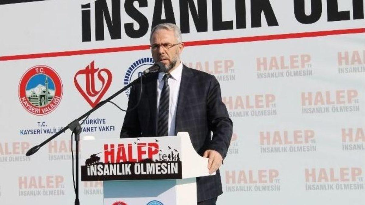 ‘Halep’te insanlık ölmesin’ kampanyası kapsamında Kayseri’den Halep’e 86 tır yardım malzemesi gönderildi. Yardım töreninde konuşan Çevre ve Şehircilik Bakanı Mehmet Özhaseki, “Otlar kurumasın diye 100 milyar Dolar para ayıran insanoğlu, orada ölen insanların hükmü yok mudur?” dedi.Kadir Has Stadyumu arkasındaki TIP parkında düzenlenen tören Kur’an-ı Kerim tilaveti ile başladı. İl Müftüsü Doç. Dr. Şahin Güven, 8 Aralık’ta başlatılan ‘Halep’te insanlık ölmesin’ kampanyası kapsamında, Kayseri’den Halep’e 86 tır dolusu yardım malzemesinin gönderildiğini ifade etti. İl Müftüsü Doç. Dr. Şahin Güven, İl Müftülüğü ve Diyanet Vakfı Kayseri Şubesi tarafından düzenlenen kampanyaya desteklerinden dolayı Kayserililere teşekkür etti.“Sera gazlarını geri çekmeye çalışıyorsunuz ama insanlık ölüyor”Çevre ve Şehircilik Bakanı Mehmet Özhaseki ise eski zamanlardan bu yana hayırseverliği ile tanınan Kayserili hemşehrilerine, Halep’e olan duyarlılıklarından dolayı minnettar olduğunu dile getirdi. Türk halkının her daim mazlum halklara kucak açtığını kaydeden Özhaseki, geçen ay Fas Marakeş’te katıldığı İklim Konferansında, katılımcı ülkelere, dünyadaki göçmen sorununun, küresel ısınma sorunundan daha öncelikli halledilmesi gereken bir sorun olduğunu hatırlattığını dile getirdi. Özhaseki, konuşmasını şöyle sürdürdü:“35 cumhurbaşkanı, 60 civarında başbakan vardı, 100 kadar da bakanlar vardı. Ben de ülkemizi temsilen gittim. Konuşma sıram gelince çıktım dedim ki ‘Doğru hep beraber uğraşalım, atmosferi kirletmeyelim, bu tabiat Cenab-ı Allah’ın bir emaneti. Kirletmemek, hali hazırdaki düzeni bozmamak esas. Otlar kurumasın, balıklar da ölmesin. Ama şimdi milyonlarca insan vatanından uzakta ve sadece çoluk çocuğu ile rahatça yaşayabilmek için dağların tepesine çıkmışlar, denizlere açılmışlar ve tehlike halindeler. Biz burada otlar kurumasın diye konuşurken, denizde çocuklar boğuluyor, insanlar dağlarda ölüyor. Acaba onlar için bir şey düşünüyor musunuz? Otlar kurumasın diye 100 milyar Dolar para ayıran insanoğlu, orada ölen insanların bu otlar kadar hükmü yok mudur?’ Türkiye olarak 3 milyon mülteciye kapımızı açtık, zenginlikten ölüyor muyuz, kasalarımız yığılı mı? Başımızda da bin bir türlü bela var. darbeler atlatıyoruz, terörle uğraşıyoruz, hainlerin dersini vermeye çalışıyoruz. Bir taraftan da ekonomik kurtuluş harbi veriyoruz. Zorluk içerisindeyiz ama 3 milyon insana kapıyı açtık. Onları doyuruyoruz, hiçbirisi aç değil, açıkta değil. Sera gazını geriye çekmeye çalışıyoruz ama insanlık ölüyor bir yandan, insanlık. Emin olun hepsi bakıyorlar, İslam ülkelerinin temsilcileri bile korkarak alkışlıyor, yazıklar olsun.”Türkiye’nin PKK, DEAŞ ve FETÖ terör örgütlerine karşı ciddi bir mücadele verdiğinin altını çizen Özhaseki, ülkenin içinde bulunduğu zor durumdan sıyrılması için var güçleriyle çalıştıklarını belirtti.“DEAŞ, İslam düşmanlığı için türetilmiş proje örgütü”Özhaseki, “Bin bir türlü sıkıntılarla uğraşıyoruz, bin bir türlü terör örgütünün tehditleri altındayız. PKK şehirlerde iyice bitti, köylerde de bitti, dağlarda da bitti, sınır ötesinde de temizliyoruz. Kaçtıkları deliğe kadar kovalayıp sonuna kadar bitirmeye de inançlıyız, kararlıyız. DEAŞ denen bir proje örgüt var. zannetmeyin ki onlar Sünni Müslümanlar; uzun uzun sakallarına bakarak sakın aldanmayın. Onlar sanki İslam dünyasının temsilcisi gibi davranıyor ama bir proje örgütü. O örgüt sayesinde vahşet işliyorlar, Batı dünyası bir araya geliyor, hem de insanları Müslümanlıktan soğutmaya çalışıyorlar. Zavallıları da kandırdıkları için, cennete gideceklerine inanarak gelip vahşet işliyorlar. Onların da farkındayız, sonuna kadar takip ediyoruz. Onları da temizledik, El- Bab’da da temizleyeceğiz inşallah. Sonra, hepinizin bildiği FETÖ örgütü. 2-3 sene öncesine kadar herkese gelip, o kibar yüzleriyle, çocuklarınızı okutalım diyenler bir günde vahşi olduklarını gösterdiler. Emir aldıkları yerin sözlerini dinleyerek darbe yapmaya kalktılar. Bugün PKK’yı, DEAŞ’ı destekleyenler, bunlara silah verenler, lazım olduğu gün bunları ister ırk, ister din adına kullanırlar. İşi bittiği zaman da atarlar. Aynısını yaptılar bunların hepsine, biz bunların farkındayız. Biz bunların altından kalkarız, bugünkü zor günleri de aşarız Allah’ın izniyle, bu gücümüz var. Önce sizlerin duası yetiyor, sonra da ne yaptığımızı çok iyi biliyoruz. Önümüz aydınlık buna da kimsenin endişesi olmasın.”