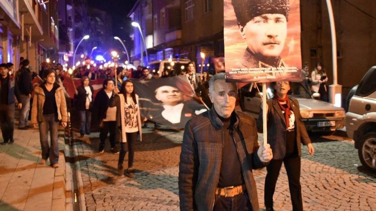Cumhuriyet Halk Partisi (CHP) Gümüşhane teşkilatı, Cumhuriyet’in kuruluşunun 94. yıldönümü nedeniyle ‘Cumhuriyet, vatan ve hürriyet’ temalı meşaleli yürüyüş gerçekleştirdi.15 Temmuz Zafer Meydanında toplanan partililer ve vatandaşlar ilk olarak müzik eşliğinde halay çekti, horon oynadı.Daha sonra yaktıkları meşalelerle ellerinde Atatürk posterleri ve Türk bayrakları ile yürüyüşe başlayan grup, Cumhuriyet Caddesi ve oradan da Atatürk Caddesinden marşlar ve sloganlar eşliğinde yürüdü.Zaman zaman yağmur yağışı altında gerçekleşen yürüyüş sırasında “Yaşasın Cumhuriyet” ve “Ya istiklal ya ölüm” yazılı dövizler taşıyan grup, “Mustafa Kemal’in askerleriyiz”, “Bu daha başlangıç mücadeleye devam”, “Türkiye laiktir laik kalacak”, “Ne dikta ne darbe tam bağımsız Türkiye”, “Genciz güçlüyüz Atatürkçüyüz”, “Gümüşhane uyuma Atatürk’e sahip çık” sloganları attı, araçtan çalan marşlara eşlik etti.Kadın Kolları ve Gençlik Kolları teşkilatlarının da destek verdiği yürüyüş Fatih Parkında son bulurken, burada basın açıklaması yapan CHP İl Başkanı Bedri Ağaç, Atatürk’ün emanet ettiği Cumhuriyet’e sahip çıkmanın ve 94.kuruluş yıldönümünü kutlamanın onur ve gururunu yaşadıklarını söyledi.CHP Gümüşhane İl Gençlik Kolları Başkanı Salih Kara da yağmur yağışına rağmen gösterilen hassasiyetten dolayı teşekkür ederek, “Vatandaşın topyekün savaşarak, kıtlık ve açlık içerisinde kurduğu Cumhuriyeti sonsuza kadar savunmak bizlerin boynunun borcudur. Biz Türk gençliği olarak şiarımızı Bursa nutkundan, yetki belgemizi de Atatürk’ün gençliğe hitabesinden alıyoruz” şeklinde konuştu.Grup daha sonra olaysız şekilde dağıldı.