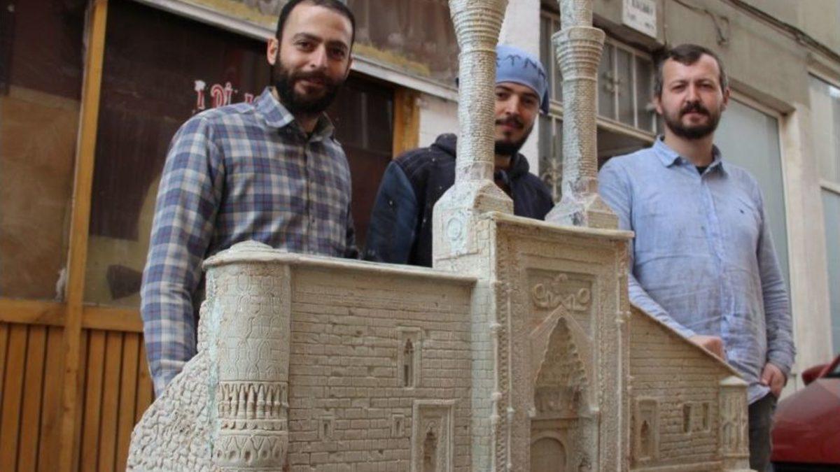 Sivas’ta üç genç heykeltıraş, üç ayda tamamladıkları 750 yıllık çifte minarenin kilden yaptıkları minyatürünü, teklif edilen yüksek fiyatlara rağmen satmıyor.Sivas’ta heykeltıraş arkadaşlar; Kerim Emre Kököz, Ali Rıza Benek ve Samet Güler Sivas’ın tarihi sembollerinden biri olan ve kent meydanındaki Selçuklu eserlerinden 750 yıllık Çifte Minareli Medrese’nin kilden minyatürünü yaptı. İlhanlı Başveziri Şemsettin Mehmet Cüveyni tarafından 1271 yılında yaptırılan medresenin kilden minyatürünün yapımı tam üç ay sürdü. Bir metre 10 santimetre boyunda, 1 metre 28 santimetre eninde yapılan eserde tamamen el işçiliği kullanıldı.Selçuklular döneminde 1271 yılında Mehmet Cüveyni tarafından yaptırılan eserin mimarisinden ve üzerindeki işlemelerden etkilenerek, birebir minyatürünü yapma kararı verdiklerini belirten Samet Güler, "Minyatürünü yapmak biraz zor oldu. İşlemeler bizi biraz zorladı. O zamanın şartlarında yapılan işlemelerin, günümüzde minyatür halinde yapılması şu anki teknoloji ile bile ne kadar zor olduğunu bize göstermiş oldu. Bu yapmış olduğumuz eserin yaklaşık olarak 3 aylık yapım süresi bulunuyor" dedi.“Yapım süresi bizi oldukça zorladı”Minyatürün yapım süresinde birçok zorluklar yaşadıklarını ve özellikle işlemelerin yapımında işlemelerin birebir yapılması gerektiğini dile getiren Güler, "Bu işlemelerin bazıları zamanla deforme olduğu için çok zorlandık. Orijinalini bulmaya çalıştık. Orijinal resimlerinden birebir işlemelerinin yapılmasına çalıştık. Üzerinde Arapça harflerin bulunduğu işlemeler, sütunlar, giriş kapısı ve minareler bizi gerçekten çok zorladı. Boyut olarak 128 santimetre en ve 110 santimetre yüksekliğe sahip. Yapım malzemesi olarak polyester kullandık. 100 yıllık bir ömrü olan polyester, uzun süre halkımızın arasında kalmasını sağlayacak. Bu eserin yapım aşamasını; Ali Rıza Benek, Kerim Emre Kököz ve ben olmak üzere üç kişilik emek sayesinde böyle bir şaheseri halkımıza ortaya getirdik" diye konuştu.Paha biçilemiyorÇifte Minareli Medrese’nin maketini satın almak isteyen bir iş adamının kendilerine 100 bin lira teklif ettiğini belirten genç heykeltıraş, ortaya çıkarttıkları eseri satmayı düşünmediklerini ifade edip, “Özellikle Sivas halkının esere büyük ilgisi var. Bunu sergilemek amacıyla birkaç defa dışarı çıkardık. Dışarıda aldığımız tepkiler çok olumlu. Eserin fotoğraflarını sosyal medya üzerinden yayınlayınca, eseri satın almak isteyenler tarafından teklifler gelmeye başladı. Bizden fiyatını soruyorlar. En son gelen teklifte İstanbullu bir iş adamı 100 bin liralık bir fiyat sundu. Biz değerinin 100 bin lira olmadığını düşündüğümüz için satmadık. Tabi değerinde bir fiyat olursa satmayı düşünüyoruz" dedi.