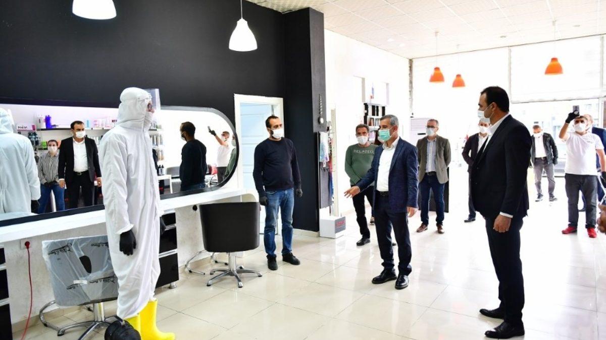 Malatya’nın Yeşilyurt ilçesi Belediye Başkanı Mehmet Çınar, 11 Mayıs 2020 Pazartesi günü kapılarını yeniden müşterilerine açacak olan berber, kuaför ve güzellik salonlarında devam eden ilaçlama ve temizlik çalışmalarını yerinde takip ederek, esnaflara maske ve el dezenfektanı hediye etti.