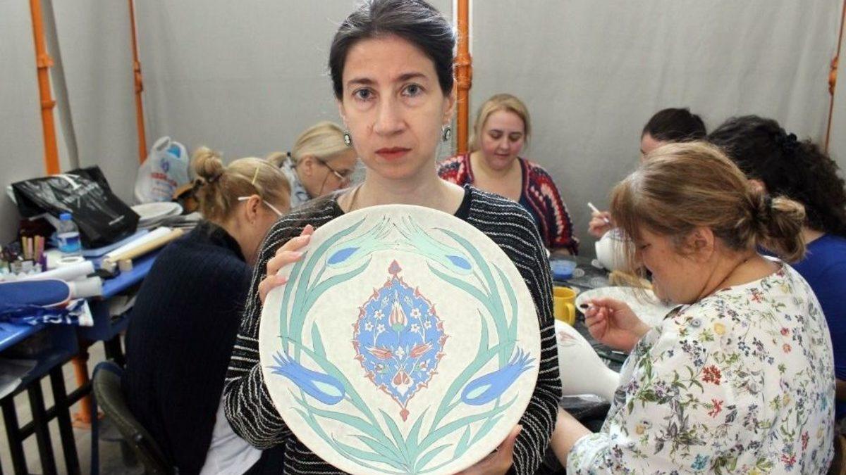 Edirne’de Osmanlı’dan günümüze gelen geleneksel el sanatlarından çini işlemeciliği, ‘geleneksel el projeleri’ kursları kapsamında kadınların ellerinde hayat bularak, gelecek nesillere aktarılacak.Kültür ve Turizm İl Müdürlüğü bünyesinde açılan kursta her aşaması ince işçilik isteyen çini işlemeciliği sanatını yaşatmak isteyen kadınlar, haftanın 3 günü toplam 18 saat kurs görüyor. Kurs sonunda aynı zamanda ev ekonomilerine de katkı sağlamayı hedefliyor.“Gelecek kuşaklara aktarmayı hedefliyoruz”Kültür ve Turizm İl Müdürü Ahmet Hacıoğlu, çini sanatının unutulmaması ve gelecek kuşaklara aktarılması gerektiğini belirterek, “Özellikle çini sanatı Edirne’de unutulmaya yüz tutmuş önemli bir sanattır. Bu işi yapan sanatçı ve zanaatçi sayısı azdır. Amacımız Kültür Bakanlığı’nın desteği ile buradaki kursiyerlere çiniciliği öğretmek. Hatta onları sertifika sahibi yapmak. Bu sertifikalar vasıtasıyla da gelecekte bu işten ekmek yemek, para kazanmalarını sağlamak niyetindeyiz. Amacımız bu sanatımızın unutulmaması ve gelecek kuşaklara aktarılmasıdır” dedi.“Güzel sonuçlar elde ettik”Kursta genelde Edirne’ye ait figürleri işlediklerini ifade eden Kültür Müdürlüğü’ne bağlı Çini İşlemeciliği Öğretmeni Işıl Talaşmanlı, “16 kişilik kursiyerimiz var, 6 Şubat itibariyle kursumuz başladı. 13 Haziran’da sonlanacak. Kursiyerlerimiz çok hevesli, çok güzel çalışıyorlar ve güzel sonuçlar elde ettik. Bir kısmı tecrübeliydi, bir kısmı da yeni sıfırdan başladı. Ona rağmen, gayet başarılı bir şekilde kursumuz devam etmekte. Kurs bittikten sonra sergimiz olacak” diye konuştu.Boyaması bitmiş bir çini ürününün baştan sona nasıl yapıldığını anlatan Talaşmanlı, “Çiniye başlarken ilk önce desenimizi ayarlıyoruz. Kül pişirimi yapılmış önce bir objemiz olması gerekiyor. Aynı ölçülerde desenimizi ayarlıyoruz. Ondan sonra desenimizi deliyoruz, ince kağıt üzerine. Desenimizi aktarmak için kömür tozu kullanıyoruz. Kömür tozu ile desenimizi ortaya çıkardıktan sonra kontörümüzü çekiyoruz. Kontör işleminden sonra boyama aşamasına geçiyoruz. Boyamadan sonra sırlama ve fırın işlemi yapıyoruz. Fırından sonra çini ürünümüzü elde etmiş oluyoruz” ifadelerini kullandı.“Maddi olarak geri dönmesini istiyoruz”Kursiyer Fatma Gülönül ise kendilerini geliştirip bir atölye çalışması yapmak istediğini belirterek, “Çinide benim bu sene dördüncü yılım. Boş vaktimi değerlendirmek için başladım çok sevdim ve devam ediyorum. Bizim buradaki kurstaki amacımız Osmanlı sanatının desenlerini günümüze uyarlıyoruz. Genelde lale, karanfil gibi desenler ile çalışıyoruz. Edirne’de bulunan Selimiye Camii, Eski Camii ve Muradiye Camii’nde bulunan tüm desenlere burada hepimiz farklı farklı kursumuzda çalışıyoruz. Buradaki tüm arkadaşlarımızla beraber hepimizin amacı, kendimizi geliştirip, bir atölye çalışması yapmak istiyoruz. Yaptığımız ürünlerin de bize maddi olarak geri dönmesini istiyoruz” dedi.