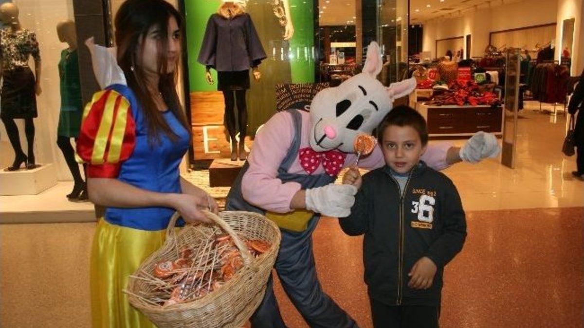 Optimum Çocuk Kulübü’nce organize edilen etkinliklere katılan miniklere, çizgi film karakteri ‘Pamuk Prenses’ ve tavşan kostümlü maskotlar aracılığı ile şeker, balon ve boyama kitabı hediye edildi.