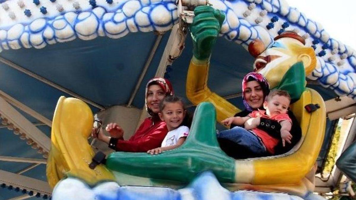 Bursa’da kurban bayramının son gününde lunapark ziyaretçi akınına uğradı. Bayramda topladıkları harçlıkları lunaparkta harcayan çocuklar gönüllerince eğlendi.Kurban bayramının son gününde Kültüpark ziyaretçi akınına uğradı. Bayram tatili dolayısıyla aileler ve gençler lunaparka gitti. Dönme dolap, çarpışan araba, gondol, salıncak, tsunami ve atlıkarınca gibi oyuncaklara binen çocuklar eğlencenin tadını çıkarttı. Tsunamiye binen gençlerin bazılarının korkusu yüzlerine yansırken, çocuklarıyla birlikte binen aileler de eğlendi. Lunaparkta eğlendiklerini söyleyen çocuklar, “Bayram harçlığımızı bugün burada harcıyoruz. Çok eğleniyoruz. Birbirinden eğlenceli aletlere biniyoruz” dedi.Çocukların aileleri ise, “Çocuklarımızı eğlendirmek için geldik. Biz de onlarla birlikte eğleniyoruz” diye konuştu.