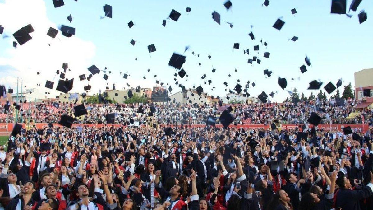 Çanakkale Onsekiz Mart Üniversitesi (ÇOMÜ) 2016-2017 eğitim-öğretim yılında 8 bin 500 öğrencisini mezun etti. Mezun öğrenciler, Çanakkale 18 Mart Stadyumunda düzenlenen törenin sonunda kep fırlatarak mezuniyet coşkusunu yaşadı.18 Mart Stadyumu’ndaki mezuniyet törenine Çanakkale Vali Yardımcısı Adil Karataş, Çanakkale Belediye Başkan Vekili Bilge Şimşek, AK Parti Grup Başkanvekili ve Çanakkale Milletvekili Bülent Turan, ÇOMÜ Rektörü Prof. Dr. Yücel Acer, Çanakkale Savaşları Gelibolu Tarihi Alan Başkanı İsmail Kaşdemir, AK Parti İl Başkanı Yeşim Karadağ, öğretim görevlileri ve öğrenci aileleri katıldı. Buradaki törende, mezun öğrenciler geçit töreni yaptı. Geçit esnasında öğrencilerin taşıdığı pankartlar, aileleri ve törene katılanları güldürdü.Törende konuşan ÇOMÜ Rektörü Prof. Dr. Yücel Acer, Çanakkale Onsekiz Mart Üniversitesinin hem eğitimde, hem de bilimsel araştırmada, akademik kaliteyi öncelik yapmış ve bu doğrultuda çalışan çeyrek asırlık bir devlet üniversitesi olduğunu söyledi. Rektör Acer, “Tarihi değerleri ve doğal güzellikleri ile ünlü Çanakkale ve ilçelerinde, birbirinden seçkin yerleşkelerinde ve Çanakkale Boğazı’na nazır merkez yerleşkesinde kurulu eşsiz güzellikte bir üniversite. Teorik eğitimle yetinmeyen, öğrencilerin uygulama imkanlarını ve iş dünyası ile ilişkilerini güçlendiren imkanlar oluşturmuş bir üniversite. Türkiye’nin en güçlü arkeoloji bölümlerinden birine, en büyük astrofizik gözlem evine, sınırlı sayıda üniversitede bulunan Siyasal Bilgiler Fakültesi’ne, en güçlü Japonca bölümüne, alanlarında ön sıralarda yer alan fakülte ve yüksekokullara sahip, Türkiye’de akademik kalite sıralamasında son iki yılda 15 basamak birden ilerlemiş bir üniversite” dedi.AK Parti Grup Başkanvekili Çanakkale Milletvekili Av. Bülent Turan ise, “Hangi terör örgütü hangi bize yan bakan hangi uluslararası güç olursa olsun bu gençlerle beraber yürümekten bir daha gurur duyduk. Ülkemiz adına umutlandık, onurlandık. Tek bayrak diyen tek millet diyen tek devlet tek vatan diyen bu gençlerimizle beraber bir daha gördük ki hiçbir korkumuz olmayacak, sırtımız yere gelmeyecek. Şu karşı ki dağlarda başta Mustafa Kemal Paşa olmak üzere Yahya Çavuşlar, Seyit Çavuşlar nasıl ki 102 yıl önce bu ülkeye yan bakanlara bu ülkeye kast edenlere dur demişlerdi. Bugünün gençleri, bugünün yiğitleri 15 Temmuz başta olmak üzere ülkemize yan bakanlara dur dediler ve dur diyecekler inşallah. Bu ülkenin beraberliği birliği, genci kadını, yaşlısı erkeği, zengini fakiri yekvücut halde bu bayrağın be devletin yanında duracak” diye konuştu.Çanakkale mehter takımının bir dinleti sunduğu törende Arslanbek Sultanbekov da bir konser verdi. Konserin ardından mezun olan 8 bin 500 öğrenci keplerini fırlatarak mezuniyet sevincini yaşadı.