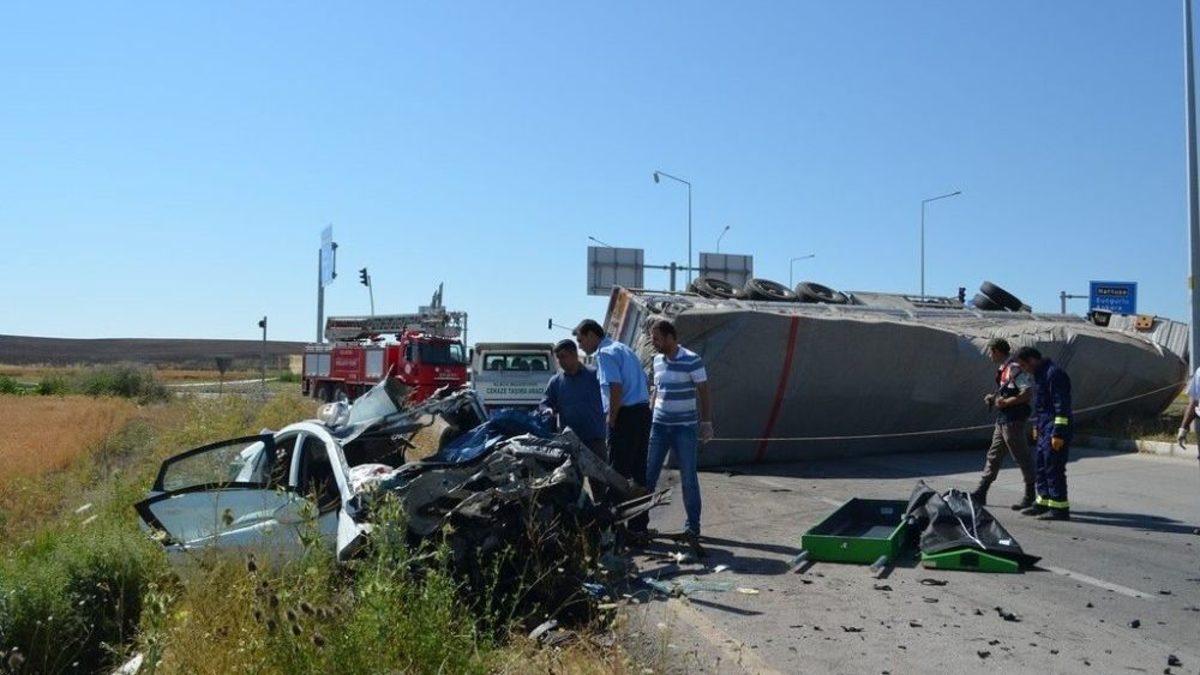 Çorum’un Alaca ilçesinde, bir otomobil ile tırın çarpışması sonucu meydana gelen trafik kazasında 3 kişi hayatını kaybederken, 2 kişi de yaralandı.Kaza, Zile Kavşağı’nda meydana geldi. Edinilen bilgilere göre, Hacı Salep yönetimindeki 38 D 4833 plakalı tır, Zile Kavşağı’nda Ahmet Ömür yönetimindeki 43 LU 451 plakalı otomobille çarpıştı. Çarpmanın etkisiyle otomobili altına alarak sürüklemeye başlayan tır, bir süre sonra kontrolden çıkarak yola devrildi. Vatandaşların ihbarı üzerine olay yerine çok sayıda ambulans ve itfaiye ekibi sevk edildi. Kazada otomobil sürücüsü ve yanında bulunan eşi Sibel Ömür, kızı Ahsen Ömür olay yerinde hayatını kaybederken, otomobilde bulunan Cihan Ömür ile tır sürücüsü Hacı Salep yaralandı. Durumu ağır olan Cihan Ömür, Alaca Devlet Hastanesinde yapılan ilk müdahalenin ardından Erol Olçok Eğitim ve Araştırma Hastanesine sevk edildi.Kazadan sonra araçta sıkışan cenazeler Alaca Belediye İtfaiye ekiplerinin yaptığı çalışmanın ardından çıkarıldı. Cumhuriyet savcısının olay yerinde yaptığı incelemenin ardından cenazeler otopsi için Alaca Devlet Hastanesi morguna kaldırıldı. Kazada hayatını kaybeden Ahmet Ömür’ün, Pazar Devlet Hastanesinin müdürü olduğu öğrenildi.Kaza nedeniyle trafiğe kapanan yol, tırın yoldan kaldırılmasının ardından tekrar trafiğe açılırken, kazayla ilgili olarak başlatılan soruşturma ise devam ediyor.