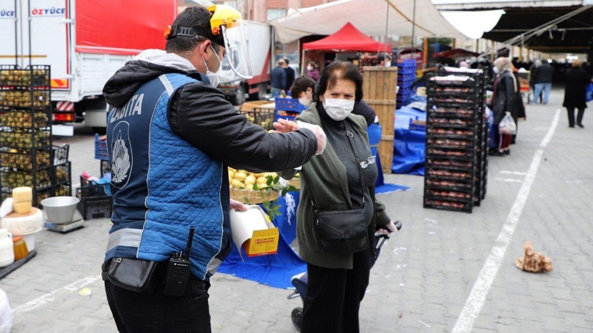 Covid-19 salgının tüm dünyada olduğu gibi ülkemizde de tırmanış göstermesi yeni tedbir ve kısıtlamaları da beraberinde getirdi. Büyükçekmece Belediyesinin Covid-19 salgınıyla mücadele kapsamında oluşturduğu zabıta timleri, semt pazarlarında esnaf ve vatandaşa yönelik denetimlerini arttırdı. Günün ilk saatlerinde pazar esnafının tamamının HES kodu kontrolünü gerçekleştiren zabıta, alışveriş için pazar yerlerine gelen vatandaşları da kuralları uyulması konusunda sık sık uyarıyor. Sosyal mesafe kuralı ihlal eden ve maskesini doğru takmayan vatandaşları uyaran zabıta ekipleri, pazar yerlerinde yoğunluk yaşanmaması için de giriş ve çıkışlarda önlem alıyor. Ayrıca Pazar yerlerinde sık sık anonslar yapılarak pazarcı esnafı ve vatandaş uyarılıyor.