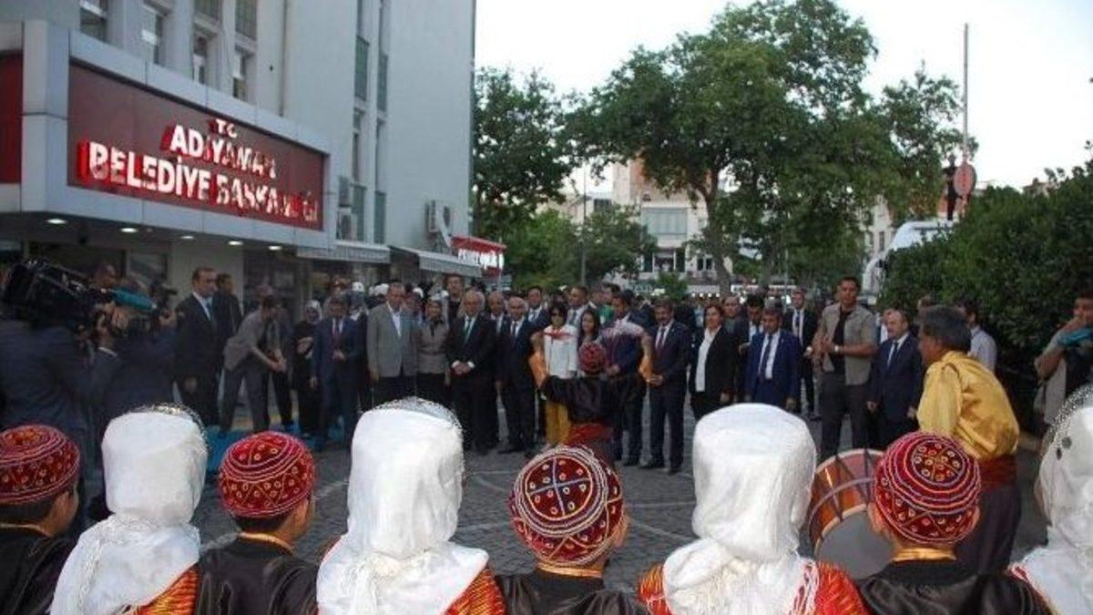 Cumhurbaşkanı Recep Tayyip Erdoğan, Adıyaman’da 710 milyon TL değerindeki 60 eserin toplu açılışı sonrasında Adıyaman Belediye Başkanlığını ziyaret etti.Adıyaman Valiliği önünde bulunan meydandan Adıyaman Belediyesine geçen Cumhurbaşkanı Recep Tayyip Erdoğan’ı belediye binası önünde folklor ekibi karşıladı. Folklor gösterilerini bir süre izleyen Cumhurbaşkanı Erdoğan, daha sonra belediye başkanlığı makamına geçti. Erdoğan, belediye binası balkonunda belediye binası önünde bekleyen halka hitap etti. Cumhurbaşkanı Recep Tayyip Erdoğan, vatandaşlara Ramazan Bayramından sonra yeniden Adıyaman’a geleceğini belirtti. Erdoğan, “Bu alakanız, bu ilginiz, bu teveccühünüz, her türlü takdirin üstündedir. Bana bugün hiç unutamayacağım bir gün bir hatıra yaşattınız. Sizin bu birliğiniz oldukça, sizin bu beraberliğiniz oldukça sizin bu dayanışmanız oldukça sizin bu kardeşliğiniz oldukça bu kale yıkılmayacak. Bu hizmet kervanı durmadan yoluna devam edecek. Tüm eğitim kurumlarıyla, tüm sağlık kurumlarıyla, adalet, emniyet, ulaşım, enerji, tarım, bütün bu alanlarda tekstil sektöründe, konfeksiyonda Adıyaman şu an sıçrıyor” şeklinde halka hitap etti.Cumhurbaşkanı Erdoğan, daha sonra cumhurbaşkanlığı otobüsüne binerek halkı selamlayıp aynı zamanda halka hediyeler dağıtarak Adıyaman Havalimanına doğru yola çıktı. Cumhurbaşkanı Erdoğan, Adıyaman Havalimanı’ndan uçakla Adıyaman’dan ayrıldı.