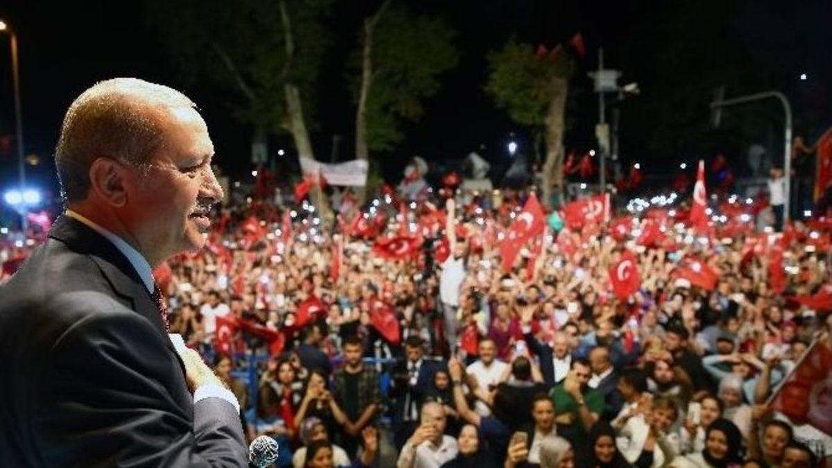 Cumhurbaşkanı Recep Tayyip Erdoğan, İstanbul Kısıklı’da halka seslendi. Erdoğan konuşmasında, “Çarşamba günü önemli bir karar açıklayacağız” dedi.Cumhurbaşkanı Erdoğan’ın konuşmasının satır başları şu şekilde;"Hükümetimiz şu anda önemli bir hazırlığın içinde ve çarşamba günü inşallah Milli Güvenlik Kurulumuzu toplayacağız. Milli Güvenlik Kurulundan sonra da bir Bakanlar Kurulu toplantısı yapacağız ve Milli Güvenlik Kurulu ardından Bakanlar Kurulu toplantısıyla da önemli bir kararı açıklayacağız""Şu anda gayet güzel bir şekilde çalışmalar devam ediyor. Hükümetimiz şu anda önemli bir hazırlığın içinde ve çarşamba günü inşallah Milli Güvenlik Kurulumuzu toplayacağız. Milli Güvenlik Kurulundan sonra da bir Bakanlar Kurulu toplantısı yapacağız ve Milli Güvenlik Kurulu ardından Bakanlar Kurulu toplantısıyla da önemli bir kararı açıklayacağız. Şimdi burada açıklamayacağım""Şehitlerimizi gördük değil mi? İşte 208 şehidimiz var. Hepsini defnettik. Ama bilesiniz ki bu halka son değil. Bunu devamı da olacak. Kah sizlere kah bizlere olacak. Zaten biz bu yola böyle çıktık, böyle koyulduk. Ne dedik? Kefenimizi giydik bu yola böyle çıktık.""Biz inanıyoruz ve üstünüz. Hiç şüpheniz olmasın. Şu anda Türkiye’nin dört bir yanında, her yerde bu tablo var. Taksim Meydanı’na, Saraçhane’ye bakın bu tablo var. Ankara’da Kızılay Meydanı’nda her yerde bu tablo var. İşte bizler de bu akşam arkadaşlarımızla bir değerlendirme toplantısı yaptık. Sizi de bu saate kadar beklettik. Kusura bakmayın. Bu saate kadar toplantımız sürdü. Burada bu akşam bir şeyi özellikle ifade etmek istiyorum. Komşularımızdan komşuluk haklarını bize helal etmelerini istiyorum. Gece geç saatlere kadar burada onlara rahatsızlık veriyoruz. Bundan dolayı da bize haklarını helal etsinler.""Bu vatan meselesinde, bu affedersiniz ne idüğü belirsizlere biz bu ülkemizi bırakmayacağız. Ve kardeşlerim, Sayın Başbakan söyledi. Ben de söylüyorum. Türkiye demokratik bir hukuk devletidir. Demokratik bir hukuk devletinde siz halkı görmemezlikten gelemezsiniz. Dolayısıyla halkın taleplerini bir kenara koyamazsınız. Halkın böyle bir talebi varsa, bunun görüşüleceği yer parlamentodur. Bunların, bu alçakların bombaladığı parlamentodan inşallah görüşülmek suretiyle inanıyorum parlamentodaki siyasi partiler, inanıyorum ki bu konuda en isabetli kararı alacaktır. Ve alınacak böyle bir kararda da onay merci olarak kararımı açıklıyorum. Ben bunu onaylarım. Çünkü gencecik yavrularımızın tanklarla, toplarla şehit edildiği bir ülkede biz siyasiler olarak eğer buna sessiz kalırsak, ebedi alemde bunun hesabını veremeyiz.""Bugün Amerika’da idam var mı? Rusya’da, Çin’de var mı? Dünyanın değişik yerlerinde var mı? Sadece Avrupa Birliği üyesi ülkelerde yok. Biz buna bir imza attık. Bizden önce attılar. Böyle bir durum var. Doğru. Fakat bu imzalar atıldığı gibi bunlar geri de alınabilir. Yeter ki parlamentomuz bu kararı alsın.""Bunlar değiştirilemez hükümler değil. Buyurun. İşte şu anda yapılanlar... Ankara’da özel harekata bombalar yağdırılıyor ve benim 47 tane polis kardeşim orada şehit oluyor. Aynı şekilde bizi yakalamaya çalıştılar. Bizim kaldığımız yere geldiler fakat biz çıkmıştık ve şimdi bakın ifadeler ortaya çıktı. İfadeler enteresan, ’Biz yakalasaydık ya ölü ya diri getirecektik." Ama bunlar bir şeyi bilmiyorlar. Ve mekeru ve mekerallah. Vallahu hayrul makirin. Bunlar hesapların üzerinde bir hesap var. Tuzakların üzerinde bir tuzak var. En büyük tuzağı kuracak olan da kudret, kuvvet sahibi Allah’tır. Bunu bilmiyorlar. Ve o muhafaza etti mi mesele yok. O korudu mu mesele yok. Bir an ileri, bir an geri yok. Vakti saati geldiğinde zaten sahibine teslim edeceğiz.""Şu anda gayet güzel bir şekilde çalışmalar devam ediyor. Hükümetimiz şu anda önemli bir hazırlığın içinde ve çarşamba günü inşallah Milli Güvenlik Kurulumuzu toplayacağız. Milli Güvenlik Kurulundan sonra da bir Bakanlar Kurulu toplantısı yapacağız ve Milli Güvenlik Kurulu ardından Bakanlar Kurulu toplantısıyla da önemli bir kararı açıklayacağız. Şimdi burada açıklamayacağım.""Ulusal medyamızda birkaçı dışında, sağolsunlar bir birliktelik gördüm, bir beraberlik gördüm. Fakat uluslararası medyada Pensilvanya’yı ziyaret edenler var. Ben buradan dünyadaki uluslararası medyaya sesleniyorum: Ey medya, ABD’de çifte kuleler yıkıldığı zaman, acaba bu uluslararası medya gidip de Bin Ladin’le bir röportaj yapsaydı buna nasıl bakardınız? Olumlu bakar mıydınız? Fakat, Türkiye’de böyle bir darbe girişiminde buluşan şahsın takımının kendisine verdiğiniz 400 dönümlük arazide gidip kendisiyle şu anda röportaj yapanlara nasıl sıcak bakıyorsunuz? Bugün de bir uluslararası CNN’e röportajım oldu, orada bunu örnek olarak verdim. Dünyanın bunu görmesi, dinlemesi, bilmesi lazım. Her akşam bir uluslararası medya grubuyla da bunları devam ettireceğiz. Anlatmamız lazım, bilmeleri lazım. Fakat öyle veya böyle, inşallah tren tekrar raylara oturmuştur.""Açığa alınanlar var ve yeni yeni görevlendirmeler yapılıyor. Eksikler var hepsinde. İşte çarşamba günkü toplantı inşallah bunların önünü açacak. Hani hep bir sözüm var ya ’İnlerine gireceğiz’ diye. Şimdi toptan inlerine gireceğiz""Bir olacağız, iri olacağız, diri olacağız, kardeş olacağız, hep birlikte Türkiye olacağız. Bizim için bu çok önemli. Birbirimizi sadece Allah için seveceğiz, makam, mevki vesaire bunlar için değil”"Bir, tek millet. Türküyle, Kürdüyle, Lazıyla, Çerkeziyle, Gürcüsüyle, Abazasıyla, Romanıyla tek millet. 79 milyon tek millet. Çünkü biz yaratılanı, yar
