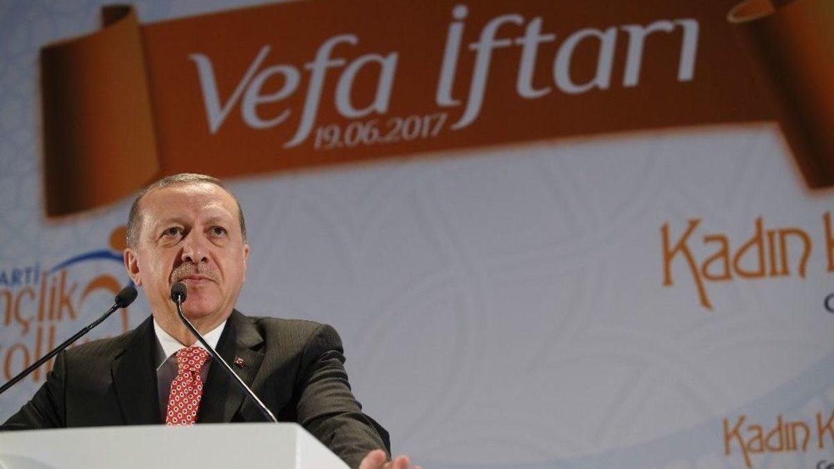 Cumhurbaşkanı Recep Tayyip Erdoğan, “Ellerindeki ‘adalet’ levhalarını, levhalar bile utanır bunlardan, istismar ile adalet aranmaz. Adaletin aranacağı yer bellidir” dedi.AK Parti Kadın Kolları ve Gençlik Kolları Vefa İftarı’na katılan Cumhurbaşkanı Erdoğan, CHP Milletvekili Enis Berberoğlu’nun tutuklanmasından sonra Ankara’dan İstanbul’a yürüyüş başlatan Kemal Kılıçdaroğlu’nu eleştirerek, “AK Parti olarak 2002 Kasım ayından beri yaklaşık 15 senedir milletimize hizmet etmenin haklı gururunu taşıyoruz. Bu dönemde eğitimde, sağlıkta, adalette, emniyette, ulaşımda, enerjide, gıda tarımda, aklınıza gelen her alanda cumhuriyet döneminin tamamında yapılanların kat kat üstünde hizmetler verdik. Bunu hep birlikte gerçekleştirdik. Ekonominin adeta çökme dönemine geldiği bir Türkiye’yi aldık 2003 yılında, o günden bugüne 3 kat büyüttük. ‘Bitti, ayağa kalkamaz, göçtü, gitti gidiyor’ dediler, onlar öyle dedikçe biz daha da palazlandık, çok daha güçlendik. Hiçbir zaman onlar hedeflerine ulaşamadılar. Ama biz en be an hedefe doğru gidiyoruz. Çünkü biz şunu biliyoruz; hedefe ulaşmayan kısrak utansın. Yarınlarından umudunu kesmiş bir ülkeyi darbe teşebbüsü dahil birçok badireyi rahatça atlatan güçlü bir yapıya kavuşturduk. Şimdi birileri yürüyor sokak, cadde. Demirel’in dediği gibi yollar yürümekle aşınmaz. Bunlarda bu yolları yürümekle aşındıramayacaklar. Ancak ellerindeki ‘adalet’ levhalarını, levhalar bile utanır bunlardan, istismar ile adalet aranmaz. Adaletin aranacağı yer bellidir. Siz bu ülkede parlamentonun kahir ekseriyetine sahip olan AK Parti’nin kapatılması davalarının açıldığı o günlerde ‘Ankara’da da yargıçlar varmış’ diye sokaklara dökülen adamlarsınız. Şimdi kalkıp utanmadan sıkılmadan AK Parti’yi adaletsizlikle veya adalet noktasındaki sıkıntıları yaşayanların yanında yer almamakla suçluyorsunuz. Karar yargınındır, yargının verdiği bu karara saygı duymak zorundasınız. ‘Anayasa devletiyiz, hukuk devletiyiz’ diyorsunuz. Anayasanın 138. maddesi kim için? Kim olursa olsun eğer birileri bırakın hükmetmeyi, tavsiye dahi edemez. Yargıyı baskı altına alamaz. Yargıyı baskı altına almak isteyenlerde aynı durumlarla yarın karşı karşıya kalabilirler. Yargı onlar içinde geçerlidir. Biz partimizin kapatılma döneminde hep arkadaşlarıma şunu tavsiye ettim, ‘sabır, sabır, sabır.’ Çünkü biz ülkemizin karışmasını istemiyorduk. Biz ülkemizi hendekler, çukurlar açanlar gibi, bombalarla tehdit edenler gibi şimdi de bu beyefendiler gibi sokaklara dökülmek suretiyle, her tarafı tahrik etmek suretiyle biz kendimize bir demokrasi mücadelesi tesis etmedik. Tam aksine demokrasiyi hukuk standartları içinde mücadele vererek yürüttük, tesis ettik” diye konuştu.Esnafın siftahsız dükkan kapattığı bir Türkiye’den rekor düzeyde büyüyen, üreten, ürettiğini dünyaya satan ülke konumuna bütün bu yaşananlara rağmen gelindiğinin altını çizen Erdoğan, “Bunlar hep önümüzü kestiler, hala da önümüzü kesiyorlar. Biz bunlara rağmen büyümeye devam ediyoruz. Ülkemizin bugün ulaştığı seviye elbette önce milletimizin emeğinin sonra da AK Parti’nin son 15 yılda hayata geçirdiği reformların eseridir. En büyük reformumuz ise ülkemizde devlet ile millet arasındaki soğukluğun ortadan kaldırılması, cumhur ile cumhuriyetin barıştırılmasıdır. Bizim bir Rabia‘mız var dedik. Utanmadan sıkılmadan, ‘teröristlerin işaretine kendilerine işaret edindiler’ diyor. Sen bunun içinde ne var biliyor musun? Sen Arapça Rabia nedir onu da bilmezsin. Bunun içinde tek millet, tek bayrak, tek vatan, tek devlet var. Bunun hangisine karşısın? Senin 6-7 tane okun var, Sakarya’da bir vatandaş sordu ‘saysana bana bu 6 tane oku’ dedi, sayamadın. Biz Rabia’mız diyoruz kızıyorsun, niye rahatsız oluyorsun. Sizin gibi dünyanın ileri gelen malum tiplerinin işaretini yapmıyoruz. Biz ülkemizi bütünleştirecek bir içeriği, Rabia’mızı söylüyoruz” şeklinde konuştu.“Haticelerimizin sayısının artması lazım”Tek millet, tek bayrak, tek vatan, tek devlet vurgusu yapan Erdoğan, “Türkiye Cumhuriyeti Devleti’nden başka bir devlet asla tanımıyoruz. Kimse bu yollara tevessül etmesin. Bu yollara tevessül edenler nasıl şimdi bedelini ağır ödüyorlar, ödemeye devam edecekler. Gabar’da da, Tendürek’te de, Kato’da da, Cudi’de de ödeyecekler. Bu konuda durmak yok, yola devam” şeklinde konuştu.Partililer içinde bulunan AK Parti Şırnak Kadın Kolları Başkanı Hatice Atan’ı işaret ederek, “Onun için Haticelerimizin sayısının artması lazım. Tarihte Nene Hatunlarımız var, şimdi de bizim Haticelerimiz var” ifadelerini kullanan Erdoğan, “15 Temmuz’da hiçbir şüpheye yer bırakmayacak şekilde gördük ki milletimiz devletine tüm kalbi ve gücüyle sahip çıkmaktadır. Dünyanın en güçlü ülkelerini dahi sarsacak 15 Temmuz ihanetinin üstesinden bu şekilde geldik. Bir ülkenin en büyük gücü silahı değildir, bunlar elbette önemli, ama bir ülkenin asıl gücü kendisine sahip çıkacak halkıdır. Milleti ile kenetlenmiş bir devleti dize getirecek hiçbir fani güç yoktur” dedi.Cumhurbaşkanı Erdoğan, 2019 seçimlerine de değinerek, partililerden var güçleri ile çalışmalarını istedi. İl ve ilçe kongrelerinin başlayacağını hatırlatan Erdoğan, “Teşkilatlarımızın tüm kademelerini yeni dönemin gerektirdiği birikime, dinamizme ve üretkenliğe sahip kadrolarla tahkim etmeliyiz. Metal yorgunluğu gösteren teşkilatlarımızı mutlaka yenilemeliyiz. AK Parti teşkilatlarında görev almak hizmet yarışında kulvara girmek demektir. Böyle bir yarışta geri kalmanın bedelini o kişiler değil, milletimiz ve ülkemi