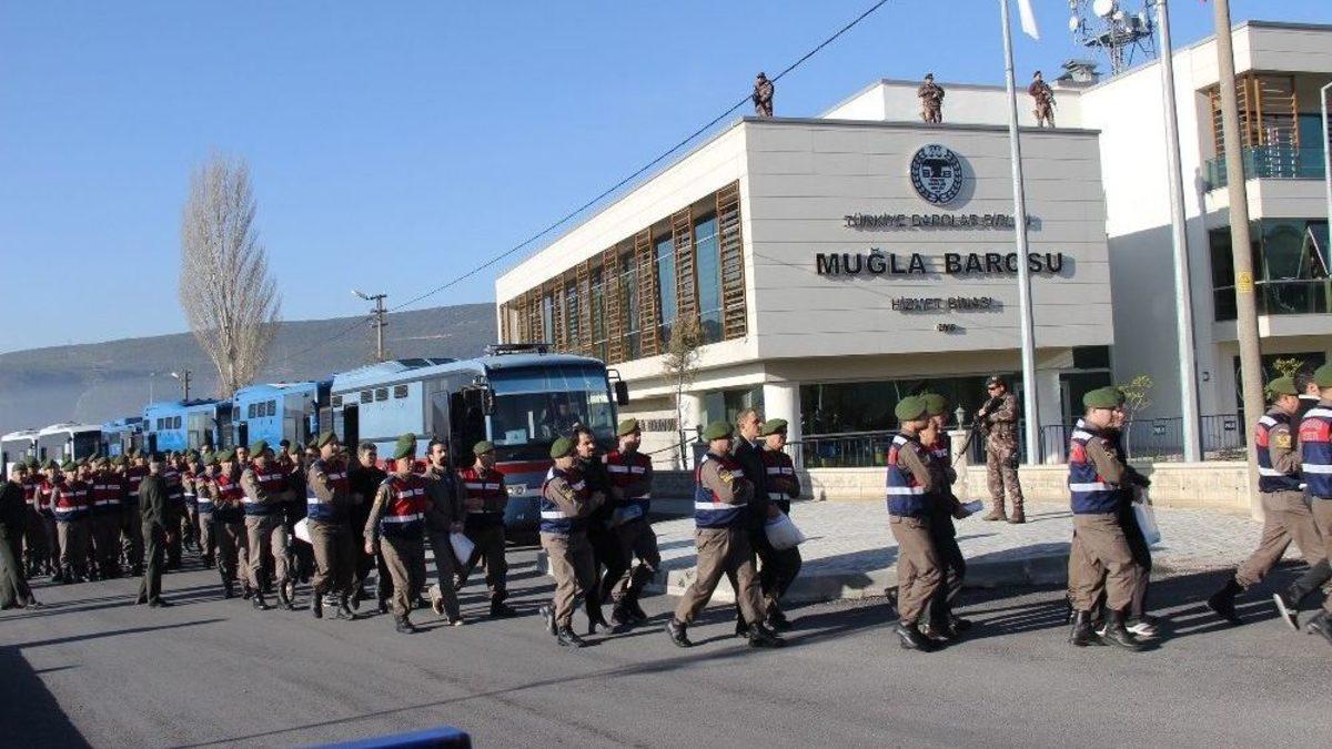 Muğla’da 20 Şubat’ta başlayan Cumhurbaşkanına suikast girişimi davasında, üç günlük aradan sonra 9’uncu günde duruşma saat 09.30’da başladı. FETÖ’nün elebaşı Fetullah Gülen’in bir numaralı sanık, Cumhurbaşkanı Recep Tayyip Erdoğan’ın da bir numaralı müşteki olduğu davada 44’ü tutuklu 47 sanık bulunuyor.Muğla 2’nci Ağır Ceza Mahkemesinde 44 tutuklu sanıktan 32’sinin ifadeleri alınırken, 12 sanığın ifadelerinin bu hafta tamamlanması öngörülüyor. Cumhurbaşkanı Recep Tayyip Erdoğan’ın eski Başyaveri Albay Ali Yazıcı’nın bugün ilk ifadesi alınacak sanıklardan olması bekleniyor. Muğla Cumhuriyet Başsavcılığı tarafından hazırlanan iddianamede, Ali Yazıcı’nın olay gecesi İzmir Çiğli 2. Ana Jet Üssü’ne giderek suikast timine Cumhurbaşkanı Erdoğan’ın kaldığı oteli bildirmesi nedeniyle Cumhurbaşkanına suikast girişimine yardım etme suçundan yargılanacağı, ayrıca Ali Yazıcı hakkında Anayasal düzene ve bu düzenin işleyişine karşı işlediği suçlar ile ilgili olarak Ankara Cumhuriyet Başsavcılığınca da soruşturmanın yürütüldüğü açıklandı.Vatandaşlar protesto ettiDuruşma öncesi tutuklu 44 sanık, Muğla E Tipi Cezaevinden geniş güvenlik önlemleri altında trafik ekipleri eşliğinde alınarak duruşmanın yapılacağı Muğla Ticaret ve Sanayi Odası’na getirildi. Burada toplanan kalabalık bir grup, sanıkları araçlardan inmesinin ardından protesto etti. Ellerindeki dövizler ile darbecileri protesto eden vatandaşların sloganları arasında sanıklar salonun alt katındaki otoparka yaya olarak geçti. Sanıklar burada araçlardan indirilerek duruşma salonuna alındı. 9’uncu günde duruşma saat 09.30’da başladı.