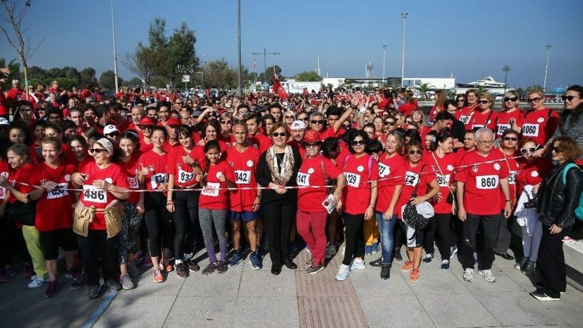 Konak Belediyesi’nin Cumhuriyet Bayramı kutlamaları kapsamında düzenlediği ’Cumhuriyet Coşkusu Halk Koşusu’na katılan 7’den 70’e binlerce İzmirli Cumhuriyet için koştu.Konak, Cumhuriyet Bayramı kutlamaları kapsamında ’Cumhuriyet Coşkusu Halk Koşusu’na ev sahipliği yaptı. Konak Belediyesi tarafından üçüncüsü düzenlenen koşu Üçkuyular Vapur İskelesi önünden başladı. Başlama işaretini Konak Belediye Başkanı Sema Pekdaş’ın verdiği yarış Göztepe Denizatı Parkında son buldu. İzmirlilerin yoğun ilgi gösterdiği koşuya 7’den 70’e her yaştan yaklaşık bin kişi katıldı. Cumhuriyet sevdalısı İzmirlinin akın ettiği koşu renkli görüntülere sahne oldu. Yaklaşık 2 kilometrelik parkuru kimi yarışmacı koşarak, kimi yarışmacı da yürüyerek tamamladı. Konak Belediyesi’nin armağanı olan kırmızı-beyaz tişörtlerle koşan katılımcılar Göztepe sahilini adeta gelincik tarlasına çevirdi.Halk koşunun ardından dereceye girenler için ödül töreni düzenlendi. Göztepe Denizatı Parkındaki törene Konak Belediye Başkanı Sema Pekdaş’ın yanı sıra Konak İlçe Milli Eğitim Şube Müdürleri Menderes Tunç ile Ali Tükoğlu katıldı. Törende konuşan Konak Belediye Başkanı Sema Pekdaş, koşuya katılan tüm İzmirlilere teşekkür etti. Bu yıl Cumhuriyet’i daha coşkulu kutlamak gerektiğini dile getiren Pekdaş, “Büyük Atatürk ve arkadaşlarının kurduğu Cumhuriyet’i çağdaş uygarlık seviyesine çıkartmak, bilimde, ekonomide bir numara olmak, üretmek, ürettiği ile büyümek bizim idealimizdir. Biz Cumhuriyet’in dediği gibi itaat eden bireyler değil, özgür bireyler için çalışıyoruz. Özgür birey kendi kararını kendi veren, sorumluluğu olan bireydir. Biz sorumlu bireylerin Cumhuriyeti için çalışıyoruz” dedi.“Cumhuriyet ilelebet yaşayacak”Sağlıklı nesiller için çalıştıklarını kaydeden Pekdaş,”El ele, omuz omuza Cumhuriyet’i kutlayalım istedik. Çünkü bu günlerde buna çok ihtiyacımız var. Cumhuriyet ilelebet yaşasın diye; kadın erkek eşitliğine dayanan, kadınların eşit yurttaş olarak hayatın her alanında var olduğu bir rejim olarak yaşasın diye, adalet olsun diye yaşasın Cumhuriyet” diye konuştu.Madalyaları Pekdaş’tanÖte yandan, aynı gün düzenlenen Konak Belediyesi Okullar Arası Kros Müsabakalarında ise 40 ilköğretim ve liseden toplam 850 öğrenci yarıştı. Cumhuriyet ve Atatürk aşkıyla koşan tüm öğrenciler izleyenlerden büyük alkış aldı. Kros müsabakasında ilk üçe giren okulların öğrencilerine madalyaların yanı sıra çeşitli hediyeler Başkan Sema Pekdaş ve Konak İlçe Milli Eğitim Şube Müdürleri Menderes Tunç ile Ali Tükoğlu tarafından verildi.