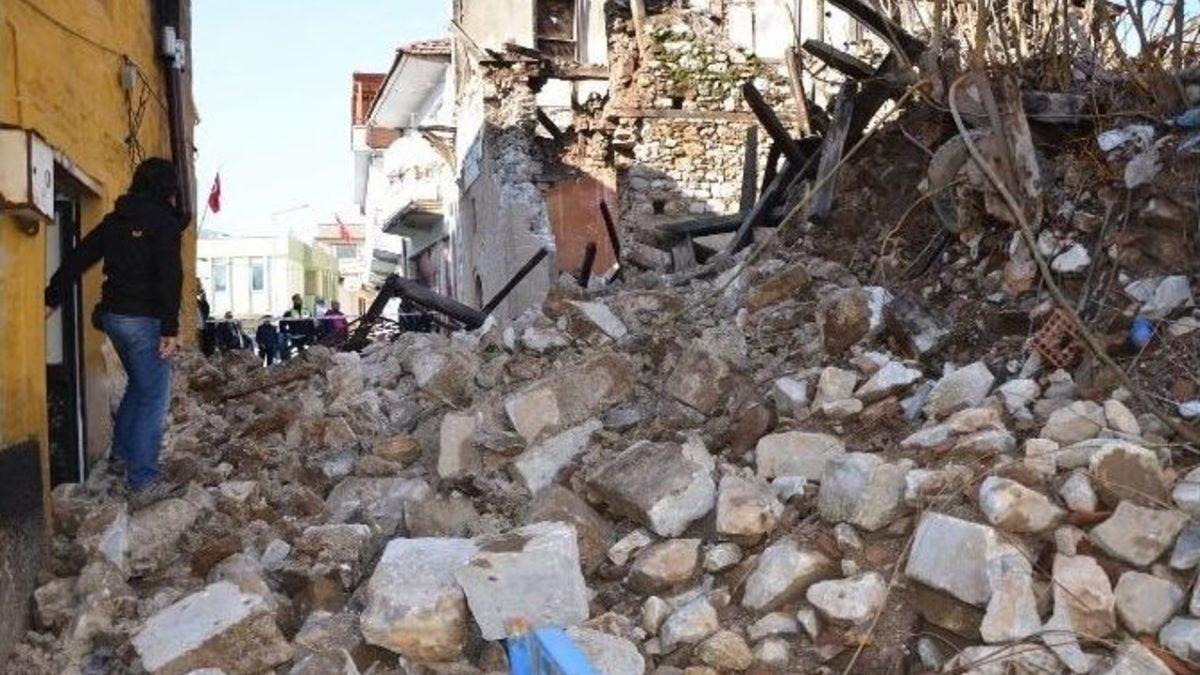 Muğla’nın Milas ilçesinde dayanacak gücü kalmayan tarihi bir ev yıkıldı, yıkılma sırasında bölgeden geçen bir motorize trafik polisi son anda kurtulurken, evin yıkılma anı ve polis memurunun kurtulma anları güvenlik kameralarına yansıdı.Milas’ta Hisarbaşı Mahallesi Tabakhane Caddesi’nde bulunan dayanacak gücü kalmayan tarihi boş bina tamamen yıkıldı. Yıkılma anında caddeden geçen bir motorize trafik polisi ve binanın karşısında evinin penceresinde oturan yaşlı bir kadın son anda kurtuldu.Meydana gelen yıkılmaının ardından olay yerine sağlık ekipleri, zabıta ve Belediye Başkan Yardımcısı Zeynep Mat da gelerek konu hakkında bilgi aldı.Yıkılma sırasında evinde pencerenin önünde oturduğunu ifade eden 66 yaşındaki Ayten Özkan son anda kurtulduğunu belirterek, “Yıkılma anında evde camın yanında oturuyordum. Demir korkuluklar olmasaydı bende yaralanmıştım. Eski binanın özel mülk olduğu için yetkililerin müdahalede bulunmuyor. Evin yıkılacağı belliydi. Daha önce muhtara, belediyeye başvurduk. Fakat binanın özel mülk olduğu ve kendilerinin bir şey yapamayacaklarını söylediler. Madem gelin mal sahipleriyle konuşun tedbir aldırın. Yazık değil mi bize. Binanın etrafında sadece demir korkuluklarla önlem aldılar. Yıllardan beri korkarak evimizde oturuyor, yatıyoruz. Yıllardan beri burada oturan yok. Arka tarafında oturan birileri vardı onlarda yıkılacak diye birkaç ay önce boşaltmışlardı” dedi.Yıkılma anı kameralara yansıdıBinanın yıkılma anı çevrede bulunan güvenlik kameralarınca kayıt altına alınırken, görüntülerde motorize bir trafik polisinin olay sırasında caddeden geçtiği ve durumu son anda fark ederek hızlanarak enkaz altında kalmaktan kurtulduğu görüldü.