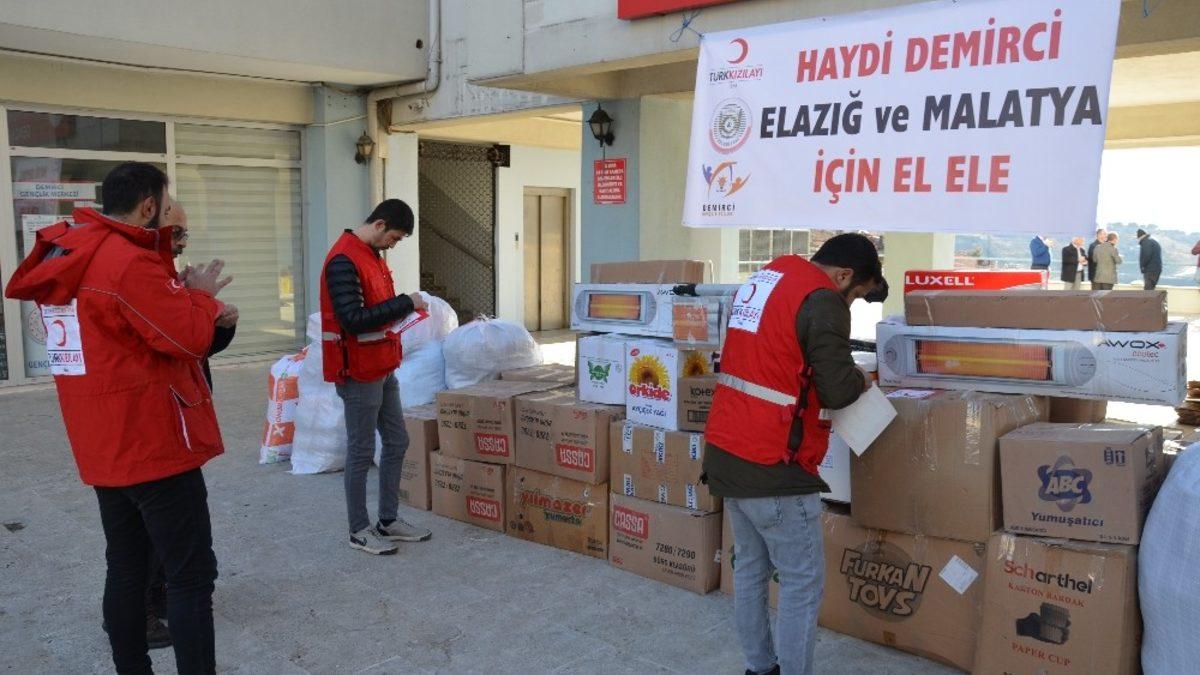 Ticaret ve Kültür Merkezi önünde toplanan eşyalar Belediye Başkanı Selami Selçuk, AK Parti İlçe Başkanı Mehmet Acar, MHP İlçe Başkanı Ümit Kanyılmaz, AK Parti ve MHP Belediye Meclis üyeleri, Kızılay Demirci Yetkilisi Ali Özkahraman ve AK Parti Gençlik Kolları Başkanı Mustafa Yavuzel’in katılımı ile Elazığ ve Malatya’ya ulaştırılmak üzere kamyona yüklenerek, bölgeye gönderildi.