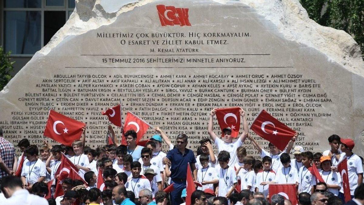 Bursa Ticaret ve Sanayi Odası (BTSO), Türkiye Cumhuriyeti tarihinin en önemli demokrasi zaferlerinden birisi olan 15 Temmuz’da vatanı için canlarını düşünmeden feda eden 250 şehidin ismini 107 tonluk anıtla ölümsüzleştirdi.250 şehidin isimlerinin kazındığı ve milletimizin birliğini yansıtması açısından devasa boyuttaki yek pare taş parçasından tasarlanan anıt törenle açıldı. Yeniceabat’taki ‘BTSO 15 Temmuz Şehitleri Mesleki Eğitim ve Öğretim Külliyesi’ne yapılan anıt 8 metre genişlik ve 5 metre yüksekliğe sahip. Anıtın açılış töreninde konuşan BTSO Yönetim Kurulu Başkanı İbrahim Burkay, 15 Temmuz 2016’da milletin iradesini ve devletin geleceğini hedef alarak kalleşçe hazırlanan eylem planlarının en hainlerinden birine şahit olduklarını söyledi. Burkay, “İşte o uzun ve karanlık gecede ellerine sadece şanlı bayrağımızı alan kardeşlerimiz abdestlerini alarak ve sevdikleriyle helalleşerek meydanlara çıktılar. ‘Vatan sevgisi imandandır’ şuuruyla silahların, tankların, uçakların karşısında adeta birer anıt gibi dikildiler. Kahraman milletimiz, Çanakkale’deki, Kurtuluş Savaşı’ndaki eşsiz ruhu yeniden ortaya koydu. Bu onurlu rütbeyi kıyamete kadar taşıyacak olan şehitlerimizi ve gazilerimizi bir kez daha saygı, minnet ve rahmetle anıyorum” ifadelerini kullandı.BTSO olarak hain darbe girişimine ilk tepki gösteren kurumlardan biri olduklarını ifade eden Burkay, 15 Temmuz hain darbe girişiminin ardından ismini değiştirdikleri Yeniceabat Mesleki Eğitim Kampusu’nda yer alan okul, yurt ve konferans salonlarına 15 Temmuz şehitleri Ömer Halisdemir, Abdullah Tayyip Olçok, Erol Olçok, Halil Kantarcı, Prof. Dr. İlhan Varank, Türkan Türkmen Tekin ve Mustafa Cambaz’ın isimlerini verdiklerini hatırlattı. Eğitim külliyesi içinde inşa edilen 15 Temmuz Şehitler Anıtı’nı tek bir özel mermer bloktan yaptıklarını ifade eden Burkay, “Bu özel anıt, 15 Temmuz’da yaşananların ve şehitlerimizin büyük fedakarlığının gelecek kuşaklara bir ders gibi aktarılabilmesinin sembolü olacak” diye konuştu.Anıt etrafındaki 250 seramik karanfilin demokrasi kahramanlarının hatırasını canlı tutacağını dile getiren Başkan Burkay, “Darbeci çeteye hayatı pahasına ilk kurşunu sıkan şehit kardeşimiz Ömer Halisdemir gibi milletimizin içinde daha nicelerinin olduğuna inandığımız Abdullahlar, Erollar, İlhanlar, Türkanlar demokrasi zaferimizin sembolü olan bu anıttan ilham alarak yetişecekler. ‘Tek Millet, Tek Bayrak, Tek Vatan, Tek Devlet’ anlayışıyla vatanımızın bölünmez bütünlüğü için milyonlarca insanımızın tek yürek haline geldiği demokrasi destanımızı, tek parçadan inşa ettiğimiz bu anıtla sonsuza dek yaşatacağız” açıklamalarında bulundu.Eski İçişleri Bakanı ve Bursa Milletvekili Efkan Ala, “15 Temmuz, demokrasinin korunduğu bir tarihtir. Hainler, ordumuzun o elbiselerine giyerek milletimize saldırdı. Bu kadar alçaklığı milletimiz tarihinde görmüş değildir. 15 Temmuz’da milletimizin mücadelesiyle hainler, tarihin çöplüğüne gömüldüler. Bu milletin dik duruşunu kimse yok edemeyecek. Bu tarihi günü unutturmamayı hedefleyen, şehrimize bu kıymetli eseri kazandıran BTSO’ya teşekkür ediyorum” şeklinde konuştu.Bursa Valisi İzzettin Küçük, 15 Temmuz’un darbeden ziyade bir terörist girişim olduğunu ifade ederek, “40 yıl boyunca çocuklarımızı, zekatlarımızı ve sınav sorularını çalan, en sonunda Türkiye’yi çalmaya çalışan örgüt suçüstü yakalandı ve bertaraf edildi. 15 Temmuz gibi önemli tarihi anlar anıtlar ve eserlerle gelecek nesillere aktarılmalı ve hatırlanmalıdır. BTSO da şehitlerimizin fedakarlığını ve milletimizin cesaretini gelecek nesillere aktarmak için çok güzel bir eser gerçekleştirdi. Kendilerine teşekkür ediyorum” dedi.Bursa Büyükşehir Belediye Başkanı Recep Altepe, 15 Temmuz’un dünya tarihinin en önemli mücadelelerinden birisi olduğunu ifade ederek, “O gün hepimiz meydanlara koştuk. Hainlerin 40 yıldır yaptığı plan, birkaç saat içinde tersine çevrildi. Türk halkı büyük bir tarih yazdı. Biz kahramanlarımızı asla unutmayacağız. Tüm bu ihanet hazırlıklarını ve dış güçlerin komplolarını da unutturmayacağız. Güçlü bir Türkiye’yi hep birlikte inşa edeceğiz” açıklamalarında bulundu.15 Temmuz Şehitleri Derneği Başkanı Tarık Şebik ise, “100 yıl önce olduğu gibi 1000 yıllık vatanımızda küresel siyonizmin yerli maşaları, ummadıkları direnişle karşılaştı. Büyük bir hüsrana uğradılar. 250 şehit ve binlerce gazi ile bu toprakları çiğnetmeyen milletin ferdi olmaktan dolayı gurur duyuyorum. Kahramanlık destanını, zihinlerde canlı tutacak bu muazzam eseri kazandıran BTSO’ya sonsuz teşekkür ediyorum” ifadelerini kullandı.Programda ayrıca 15 Temmuz kahramanı olan şehitlerin yakınları, gaziler ve aileleri de katıldı. Şehitlerin ailelerine ve gazilere ise plaket takdim edildi.