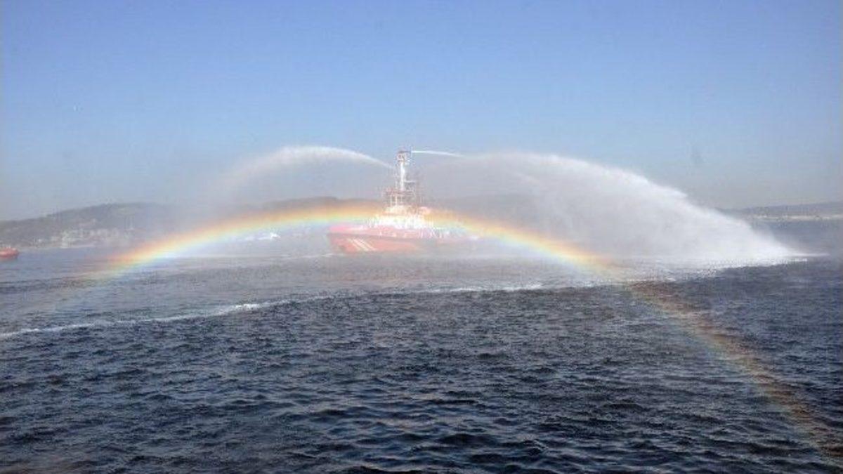 Çanakkale'deki 1 Temmuz Denizcilik ve Kabotaj Bayramı kutlamalarında renkli görüntüler ortaya çıktı.Denizcilik ve Kabotaj Bayramı etkinlikleri, Cumhuriyet Meydanı'ndaki Atatürk anıtına çelenklerin sunulmasıyla başladı. Çanakkale Liman Başkanı Barış Birdane, “Bu tür tesislerin planlı ve düzenli olarak yapılması, sahil şeridimizin ekolojisinin korunması, dokusunun bozulmaması için önemlidir. Kıyı tesisi tanımı hiçbir şekilde, deniz canlıları ve çevrenin zarar göreceği şekilde plansız betonlaşma, doldurma ve denizi kirletme özgürlüğü anlamına gelmez. Denizlerimizi ve kıyılarımızı halk olarak sahiplenmeli, korumalı ve temiz tutmalıyız. Bugün su sporları yaptığımız, Saros Körfezi'nde, Çanakkale Boğazı'nda ve tüm denizlerimizde bizden sonraki nesiller de su sporları yapabilmelidir. Onlara bizim bulduğumuzdan daha temiz bir deniz bırakmak ulus olarak ülkümüz olmalıdır" dedi.Buradaki törenin ardından, protokol, Gestaş’a ait arabalı feribotla denize açıldı. Çanakkale Valisi Ahmet Çınar, Belediye Başkan Vekili Celal Karakaş, Sahil Güvenlik Çanakkale Grup Komutanı Albay Hasan Tunay ile Liman Başkanı Barış Birdane, ‘deniz şehitleri’ adına Çanakkale boğazına çelenk bıraktı. Kıyı Emniyeti Genel Müdürlüğüne ait römorkörler ise denizde su gösterisi yaptı. Römorkörlerin denizde oluşturduğu gökkuşağı izleyenleri büyüledi. Gösteriye, Sahil Güvenlik ve polis botu da eşlik etti.