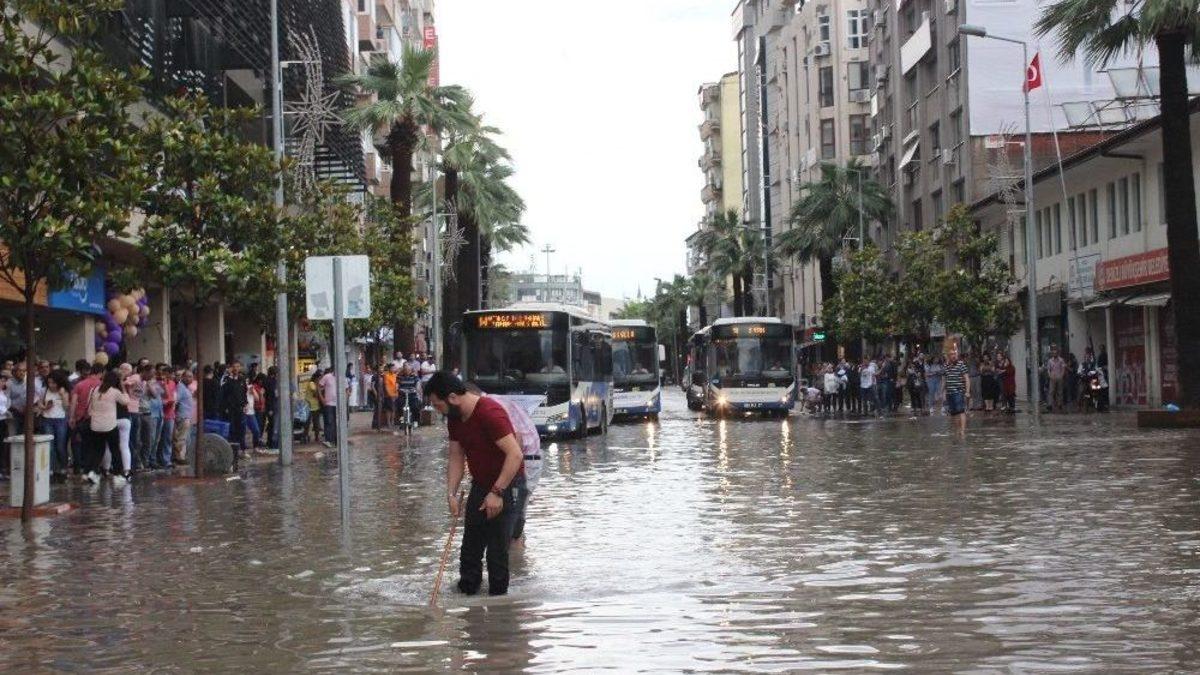 Denizli’de etkili olan sağanak yağış yolları göle çevirdi, iş yerlerini su bastı.Denizli’de, saat 17.15 sularında başlayan gök gürültülü sağanak yağış hayatı olumsuz etkilerken, kent merkezinin en işlek yerlerini su altında bıraktı. Özellikle Gazi Bulvarı, Doktorlar Caddesi ve Halk Caddesi su baskını nedeniyle kapandı. Gazi Bulvarında yaklaşık 300 metrelik alan kaldırımlara kadar tamamen su altında kalırken, birçok iş yerini su bastı. Su birikintisi nedeniyle belediye Gazi Bulvarı güzergahını kullanan belediye otobüslerinin seferleri bir süre durdu. Bulvar üzerinde iş yerleri bulunan vatandaşlar suyun gitmesi için kendileri rögar kapaklarını açmaya çalıştı, o anları ise meraklı vatandaşlar kameraya aldı.Rüzgarla birlikte etkisini sürdüren sağanak yağış, şimşek ve fırtınaya dönüştü. Kentin yüksek kesimlerine yıldırım düşerken, sağanak yağış nedeniyle çok sayıda kişi araçlarıyla yollarda mahsur kaldı. Birçok noktada ani su baskınlarına dönüşen yağışlar nedeniyle itfaiyeye ihbar yağdı.15 Temmuz Delikliçınar Meydanı’nda seyir halinde olan vatandaşlar, aniden bastıran dolu ve yağıştan korunmak için saçak altlarına sığındı. Yağışın etkisiyle yola sürüklenen mıcırlardan dolayı da maddi hasarlı kazalar meydana geldi. Araçları mahsur kalarak, polise ve itfaiyeye ihbarda bulunan vatandaşların yardımına itfaiye ve belediye ekipleri yardım ederken kazalara karışan araçlar çekicilerle bulundukları yerlerden kaldırıldı.