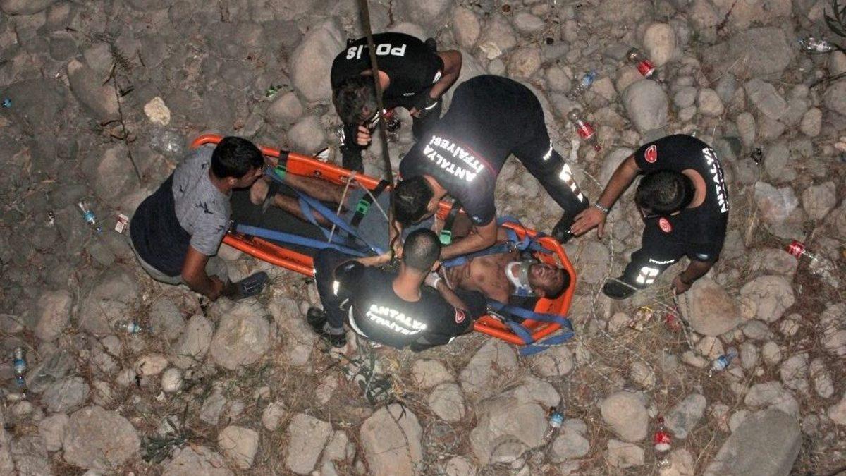 Antalya’nın Kemer ilçesinde duvar üzerinde otururken 6 metre yükseklikten kuru dere yatağına düşen genç, itfaiye tarafından kurtarıldı.