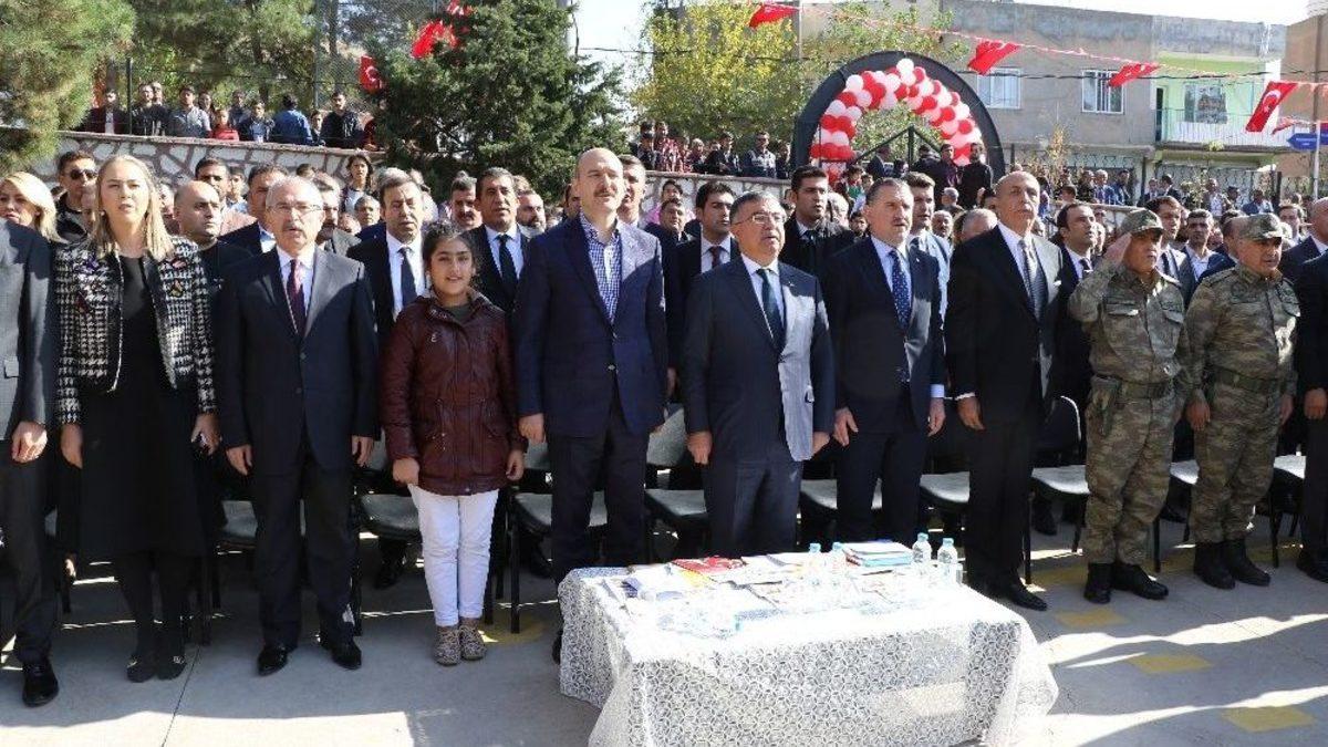 İçişleri Bakanı Süleyman Soylu, Mardin’in Derik ilçesinde katıldığı okul açılışında, ilçeye kayyum görevlendirildiğinden bu yana 150 milyon TL’lik hizmet yapıldığını belirterek, "Bu para hizmetlere gitmemiş olsaydı, teröre kurşun olarak gidecek ve ülkenin birlik ve beraberliğinin ortadan kalkmasına sebep olacaktı" dedi.İçişleri Bakanı Süleyman Soylu, Milli Eğitim Bakanı İsmet Yılmaz ile Gençlik ve Spor Bakanı Osman Aşkın Bak, Mardin’in Derik ilçesinde Ayaydın ailesi tarafından yaptırılan Mehmet Ayaydın İlk ve Ortaokulunun açılışını yaptı. Açılışa, bakanların yanı sıra, Jandarma Genel Komutanı Orgeneral Arif Çetin, Mardin Valisi Mustafa Yaman, AK Parti Mardin, Diyarbakır ve Şanlıurfa milletvekilleri, kent protokolü ve vatandaşlar katıldı. Açılış töreni, Kur’an-ı Kerim tilavetinin okunmasıyla başladı. Ardından tüm şehitler için saygı duruşunda bulunulup, İstiklal Marşı okundu."Gençlerimizi spor salonlarına çağırıyoruz"Törende konuşan Gençlik ve Spor Bakanı Bak, hayırseverlerin yaptırdıkları iki okulun açılışı için Derik’e geldiklerini belirterek, yapılan bu güzel eserlerin ilçeye hayırlı olmasını diledi. Bakanlık olarak kendilerinin de spor merkezleri ile gençlik ve spor merkezleri yaptığını anlatan Bak, "Gençlerimizin spor salonlarında olmasını istiyoruz. Bu salonlarda spor yapan gençlerimizin olimpiyat şampiyonu olmasını istiyoruz. Bütün gençlerimizi spor salonlarına çağırıyoruz. Başımızda sporun içerisinden gelen cumhurbaşkanımız var. Spordan hiç ayrılmayın, sporu bir hayat tarzı olarak bilin. Spor sizin uyuşturucudan, ideolojik yaklaşımlardan her türlü kötü niyetten uzak tutar. İşte sporun gücü ve ruhu budur. Açılacak olan iki okulun Derik halkına tekrardan hayırlı ve uğurlu olmasını diliyorum" dedi.İçişleri Bakanı Süleyman Soylu, Ayaydın ailesine teşekkür ettiklerini belirterek, "Bir taziyenin yıldönümünde buradayız. Şehidimizin şehadete erişinin yıldönümünde buradayız. Ama biz buraya sadece yas tutmaya gelmedik. Hainlere, ülkemizi hedeflerinden ulaştırmaya karşı verilebilecek en güzel cevap olan okulla, eğitimle, birlik ve beraberlikle buraya geldik. Geçen yıl bu zamanlarda hüzünle buradaydık. Ama bugün sonbaharda açan güneşle aydınlık bir günde buradayız. Dünden daha iyi olduğumuz, yarın bugünden daha iyi olacağımız bir anlayışla buradayız" diye konuştu."Yolumuz aydınlıktır"İlçeye yönelik hizmetlerin geçen yıldan bu yana arttığını anlatan Soylu, şunları kaydetti:"Safitürk buranın kayyumuydu aynı zamanda. Burada hizmetleriyle beraber sizinle buluştu. Eşi Ayşegül hanımın burada kaldığı zamanda Safitürk ile yaptığı konuşmaları anlattığında bu ülkenin evladı olarak sorumluluklarımızın arttığını düşünüyorum. O buralı değildi, hısmınız da değildi ancak o sizinle birlikteydi, size hizmet etmenin kendisi için şeref olduğunu ailesine anlatan biriydi. Burada su arıtma tesisi yoktu, bugün su arıtma tesisi var. Çöp aktarma tesisi kurulmamıştı, bugün var. Yollarının 150 kilometresi asfalt oldu, 60 kilometresi daha yapılıyor. 40 adet çocuk parkı yapıldı. Çocuklarımız okuldan arta kalan zamanlarında daha iyi eğlensinler diye. 10 adet taziye evi yapıldı. 10 adet örnek zeytin bahçesi yapıldı. 15 adet okulun tadilatı yapıldı. 25 adet saha yapıldı. Hayvan pazarı yapılacak, zeytin fidan yetiştirme merkezleri kurulacak. Buraya kayyum atandığından itibaren buraya yapılan hizmetlerin bedeli 150 milyon TL’dir. Bu 150 milyon bu hizmetlere gitmemiş olsaydı, teröre kurşun olarak girecek ve bu ülkenin birlik ve beraberliğinin ortadan kalkmasına sebep olacaktı. Yine şunu ifade etmek istiyorum. Yolumuz aydınlıktır. Burada bir okul açılıyor. Hedefimiz aydınlık, gelişmiş ve büyük Türkiye’dir. 2023, 2053 ve 2071’dir. Büyük ülkeler büyük planlar yapan ülkelerdir. Ne zaman büyük planlar yapabilirseniz o zaman büyük bir ülke oluruz. Yarını planlayan bir Türkiye var.""Bu ülke için büyük hedeflerimiz var"Milli Eğitim Bakanı İsmet Yılmaz ise, Ayaydın ailesine teşekkür ettiklerini anlatarak, Türkiye’de eğitim kalitesini artırdıklarını kaydetti. Eğitim seviyesinin arttırılması için derslik başına düşen öğrenci sayısının kabul edilebilecek bir seviyeye getirilmesi gerektiğini dile getiren Bakan Yılmaz, "Türkiye’de 36’ydı, 24’de, Mardin’de 50’ydi, 29’a düştü. Hem Türkiye’de hem de Mardin’de kaliteli eğitim için köşe taşını koyduk. Öğretmen başına düşen öğrenci sayısını 17’ye düşürdük. Eğitimi teknolojiyle birleştirmek lazım. Fatih projesini başlattık. Eğitimin kalitesini arttırmak için geçmiş dönemlerde olmadığı kadar bütçe ayırırsanız ihtiyaçları karşılarsınız diyerek, 2002’de eğitime ayrılan miktar 2,8 iken bunu 5,8’e çıkardık. Türkiye’nin eğitimi bugün dünden daha iyi. Bizim büyük hedefimiz var bu ülke için. İstiyoruz ki bu ülkede 80 milyon insanın işi, aşı evi ve barkı olsun. Türkiye’yi dünyanın en iyi 10 ekonomisinden biri yapmak için çalışıyoruz. Bunları birlikte gerçekleştireceğiz."Konuşmaların ardından okulun açılış kurdelesi kesildi. Daha sonra okulu gezen bakanlar, yetkililerden bilgi aldı, öğrenci ve öğretmenlerle bir araya geldi.