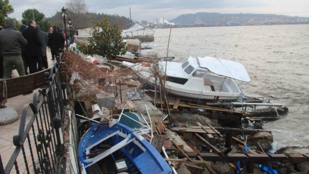 Zonguldak’ın Ereğli ilçesinde dün gece geç saatlere kadar etkili olan fırtına sonucu oluşan dev dalgaların sahil kesimindeki iş yerlerine verdiği zarar sabah ortaya çıktı.Kdz. Ereğli ilçesinde dün sabahtan itibaren etkili olan fırtına akşam saatlerinde şiddetini artırdı. Fırtına ile birlikte oluşan ve yüksekliği 15 metreyi bulan dev dalgalar sahil kesimindeki çok sayıdaki iş yerini kullanılamaz hale getirdi. Ereğli ilçesinde bulunan yelken kulübünün idari binası sular altında kalırken, çok sayıda yelkende dalgalarla birlikte denizde kayboldu. Bozhane limanı içerisinde bulunan balıkçı barınağında ki 15 kadar kayık batarken, 25 kadar kayıkta zarar gördü. Bazı vatandaşlar dalgalardan kurtardıkları kayıklarını karaya çekerek önlem aldı. Balıkçı barınağındaki çekekler ise kullanılamaz hale geldi.Yaşanan felaket sonrası sabah saatlerinde sahile inen Kdz. Ereğli Belediye Başkanı Hüseyin Uysal, başkan yardımcıları ve daire müdürleri ile birlikte incelemelerde bulundu. Sahilde ki tahribatı görünce ‘Buralara ne olmuş böyle?’ diyerek şaşkınlığını dile getiren Başkan Uysal, esnafları ziyaret ederek geçmiş olsun dileğinde bulundu.Başkan Uysal “Bunda şer aramayın, hayırdır”Uzun yıllardan sonra ilk defa böyle bir felaket yaşandığını anlatan Uysal, en büyük sevinçlerinin can kaybının yaşanmaması olduğunu söyledi. Temizlik işçilerine moral veren Başkan Uysal konuşmasında “Kader vardır. Bu gün bunları şer görmeyin. Hayırdır. Neden hayırdır biliyor musunuz? Mendireklerin yetmediğini görmüş olduk. Sahilin yenilenmesi lazımdı. Bir gün can kaybı olacaktı. Bunda asla şer aramayın. Bu şer gibi görünen şey hayırlı oldu. Buraları komple yenileyeceğiz, merak etmeyin” dedi.Başkan Uysal sahilde dün gece dalga yüksekliğinin 15 metreyi aştığını belirtirken, deniz suyunun sahile yaklaşık 40 metre kadar girdiğini ifade etti. Uysal, Kdz. Ereğli Belediyesi olarak zararın tespitinin ardından bir daha bu tür felaketlerin yaşanmaması için her türlü önlemi alacaklarını dile getirdi.Kdz. Ereğli Belediyesi ekipleri sahil kesiminde ve zarar gören iş yerlerinde temizlik çalışması yapmaya başladı.