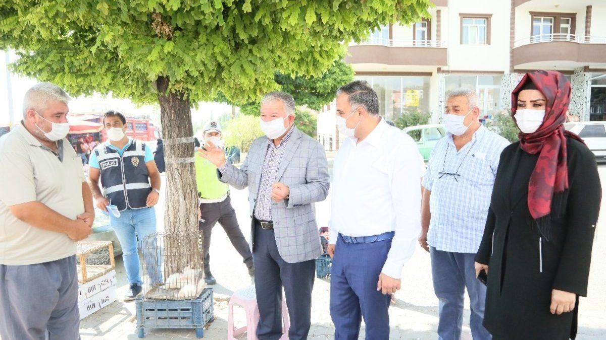Develi Kaymakamı Murat Duru, Develi Belediye Başkanı Mehmet Cabbar, İlçe Sağlık Müdiresi Fatma Anteplioğlu ile birlikte sebze-meyve pazarı, kafeler, marketler ve iş yerlerine ziyarette bulunarak alınan tedbirlere hassasiyetle uyulması için hatırlatmalarda bulundu. Maske, sosyal mesafe ve temizlik kurallarına uyulmasının hem hayati hem de çok kolay olduğunu ısrarla vurgulayan Kaymakam Duru “Şimdi eğer bu tedbirleri uygulamazsak ilerde daha ağır tedbirleri uygulamaya mecbur kalabiliriz. Sadece sizlerin tedbirleri uygulaması yetmiyor aynı zamanda tedbirleri uygulamayanları da güzelce uyarmamız gerekmektedir” dedi. Salgının artış gösterdiğini belirten Cabbar Başkan “Hem kendi sağlığımızı hem de sevdiklerimizi korumanın en kolay yolu olan maske, sosyal mesafe ve temizlik kurallarına uymamız büyük önem arz etmektedir” dedi.