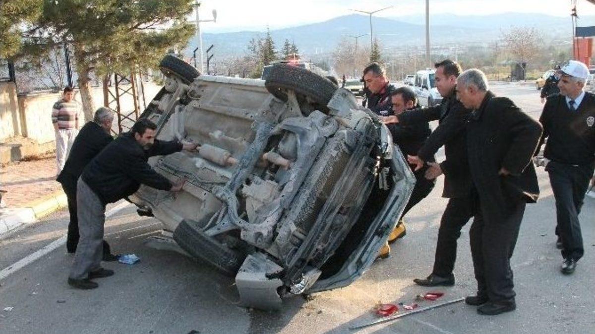 Elazığ’da trafik lambası ve direklere çarpan otomobilin ters dönmesi sonucu meydana gelen kazada 4 kişi yaralandı.Kaza, Elazığ’ın merkez Harput yolunda meydana geldi. Edinilen bilgiye göre, Muhammet Nuri Polat idaresindeki 23 HA 590 plakalı otomobille kent merkezine seyir halindeyken 8. Kolordu Komutanlığı yakınlarında aracının direksiyon hakimiyetini kaybetti. Yoldan çıkan otomobil önce kaldırıma çıkarak sokak lambasına çarparak orta refüje yöneldi. Orta refüje çıkan otomobil elektrik direğine, trafik lambasına ve uyarı levhasına çarparak karşı şeride geçip ters döndü. Yaklaşık 150 metre sürüklenerek devrilen otomobilde bulunan 4 kişi yaralandı. Kazayı gören askerler, durumu sağlık ekiplerine bildirdi. Olay yerine gelen ambulanslarla 4 yaralı kentteki çeşitli hastanelere kaldırılırdı.Yaralanan 4 arkadaşın Harput’tan piknikten döndükleri öğrenildi.Kaza ile ilgili soruşturma başlatıldı.