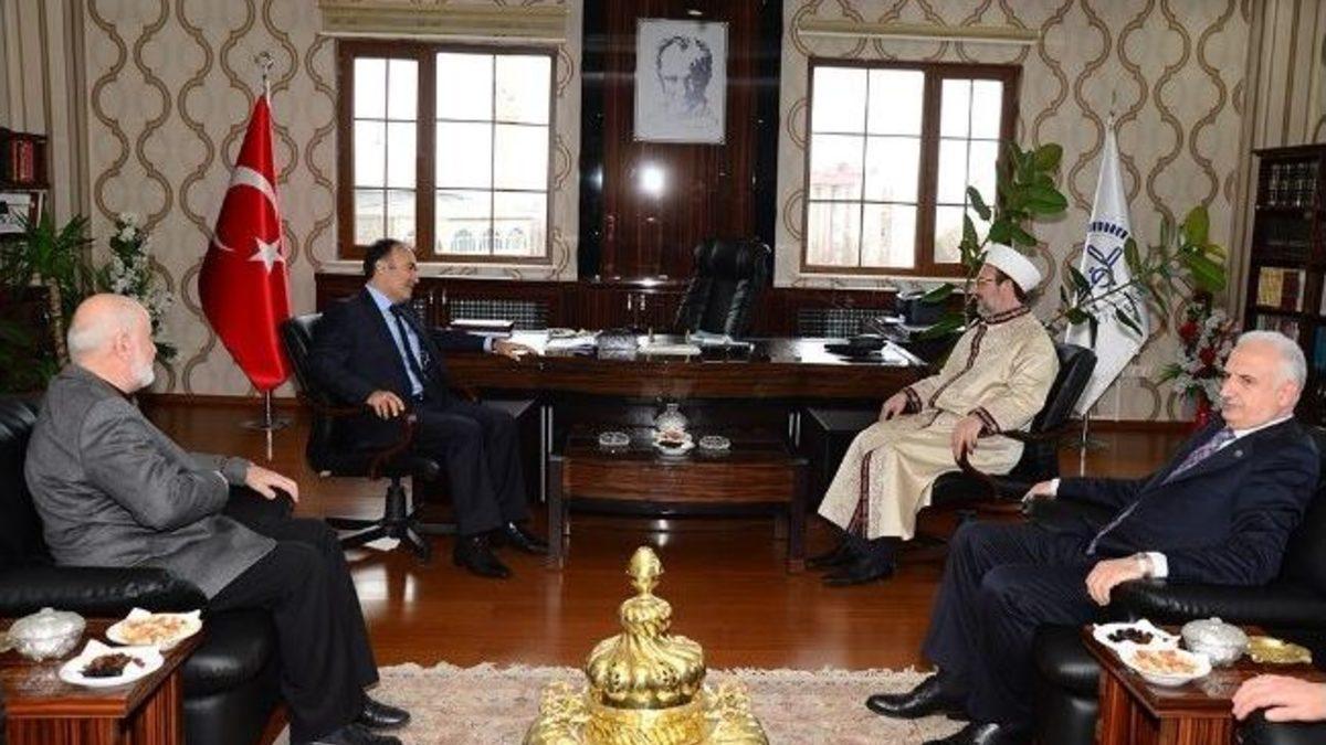 Diyanet İşleri Başkanı Prof. Dr. Mehmet Görmez, Kutlu Doğum Haftası etkinlikleri kapsamında ‘Din Samimiyettir’ adlı konferansa katılmak üzere Erzurum’a geldi.Erzurum Müftülüğü Konferans Salonu'nda düzenlenen Kutlu Doğum Haftası etkinliklerine Diyanet İşleri Başkanı Prof. Dr. Mehmet Görmez, Vali Ahmet Altıparmak, İl Emniyet Müdürü Kamil Karabörk, Atatürk Üniversitesi Rektörü Hikmet Koçak, İl Müftüsü Hasan Çınar, Başkan Vekili Eyüp Tavlaşoğlu, ERVAK Başkanı Erdal Güzel, Vuslat-Der Başkanı Muhammed Şevket Gökşan ve çok sayıda davetli katıldı.Bu etkinliğin Erzurum’da yapılmasından dolayı büyük onur duyduğunu belirten İl Müftüsü Hasan Çınar, “Cesur sorular sorup ilkeli cevaplar almaya ihtiyacımız var. Ve artık elimizi taşın altına sokmanın fikir çilesine müşteri olmanın, okumanın anlamak, anlamanın yaşamak ve yaşatmak gibi bir gayesi olduğunu fark etmenin vaktidir. Ümit ediyoruz ki bir haftalık akademik ve entelektüel imkân olan Kutlu Doğum Haftası’nın en mümtaz programı olarak ifade edebileceğimiz Hz. Peygamber ve insan yetiştirme düzenimiz ile ilgili bu bilgi şöleni bunun adımlarından biri olacaktır. Bu adımın şehrimizde atılıyor olması da bizim için kelimelerin ötesinde bir onur kaynağıdır” dedi.‘ACABA İNSANLIK ÖLÜYOR MU?’Küresel ölçekte yaşanan olaylara değinen Diyanet İşleri Başkanı Prof. Dr. Mehmet Görmez, “Şimdi bugün topyekûn insanlığımızın çok çetin sınavlardan geçtiği günleri yaşıyoruz. Gerçekten de hem yerel ölçekte hem bölgesel ölçekte hem de küresel ölçekte öyle hadiseler yaşanıyor ki zaman zaman biz ‘acaba insanlık ölüyor mu?’ diyecek noktalara geliyoruz. Ve bu husus hepimizi büyük endişelere sevk ediyor. Hz. Peygambere ümmet olanların birbirleriyle olan ilişkilerindeki dikkatsizlik, samimiyetsizlik bugün biz Müslümanlar için artık acı veren birer yük olmaya başladı. İman ruhlu demek aslında eman ruhludur. Bugün hiçbir iman ruhlu eman ruhlu değildir değil. Neden bugün iman ruhları eman ruhlu değildir. Müslümanların camileri bile eman yurdu olmaktan çıktı. Onun için üzerinde düşünmemiz lazım. İslam yurdu barış yurdudur, selam yurdudur selamet yurdudur. Ama bugün İslam yurtları selamet yurtları değil. İslam yurdu ihsan yurdudur aynı zamanda. Her türlü güzelliğin hâkim olduğu yurtlardır” ifadelerini kullandı.