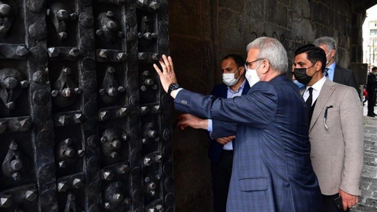 Aslına uygun olarak yenilenen ve surlardaki yerine monte edilen kapıyı yerinde inceleyen Vali Karaloğlu yetkililere çalışmalarından dolayı teşekkür ederken şehrin tarihine, kültürüne ve değerlerine sahip çıkmaya devam edeceklerini söyledi. Karaloğlu, 5 kilometre uzunluğundaki surların dışarıya açılan 4 ana kapısından birisi olan Mardin Kapıda gerçekleştirdiği incelemelerin ardından Keçi Burcunun etrafında sürdürülen peyzaj çalışmalarını da inceleyerek yetkililerden devam eden çalışmalar hakkında bilgi aldı.
