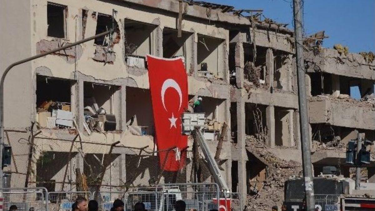 Diyarbakır’ın Bağlar ilçesinde bulunan emniyet müdürlüğü ek binasına yönelik teröristler tarafından bombalı araçla düzenlenen saldırının ardından yaralar sarılmaya başlandı.Bombalı araçla düzenlenen terör saldırısında Diyarbakır Emniyet Müdürlüğü ek binası olarak kullanılan ve içinde Terörle Mücadele, Çevik Kuvvet ile Olay Yeri İnceleme Şube Müdürlüğü binalarının bulunduğu yerleşkedeki binaların bir bölümü yıkılırken, çevredeki evlerde de büyük hasarlar oluştu. Emniyet müdürlüğüne ait binaların yanı sıra çevrede bulunan 10 bina kullanılmaz hale geldi. Saldırının ardından yaralar sarılmaya başlandı. Polis ekipleri tarafından geniş güvenlik önlemlerinin alındığı ve tüm yolların trafiğe kapatıldığı saldırı bölgesinde görevlendirilen ekipler, hasar gören binalardaki daireleri kontrol etmeye başladı. Evlerde ve binalarda hasar tespit çalışmaları yapan ekiplerin tutacağı raporların ardından zarar gören vatandaşlara destek sağlanacağı belirtildi.Patlamada hasar gören araçlar bölgeye sevk edilen çekicilerle kaldırılmaya başlandı. Bölgeye gelen çekiciler, polis ekipleri tarafından kontrolleri yapılan hasarlı araçları çekerek bölgeden uzaklaştırmaya başladı. Yaralar sarılması için hasar tespit çalışmaları sürerken, meraklı vatandaşlar da bölgeye akın ederek çalışmaları izledi."Allah hakkımızı yanlarına bırakmasın"Patlamada yaralanan ve iş yeri ile evi kullanılmaz hale gelen Ali Çetin, bunu yapanlardan haklarının sorulmasını istedi. Çetin, “Dün Allah beni kurtardı. Beni kurtaran Allah’tır ama bunu yapan kim olursa olsun Allah hakkımızı ondan alsın. Patlama anında ben iş yerindeydim. İki defa patlama oldu. Ben kendimi sakladım ve kurtuldum. Sonra silah sesleri geldi. Dışarı çıktığımda ana baba günü olduğunu gördüm. Dumanlar yükseliyordu. Diyarbakır bunlara layık değildir. Bunu yapanlarda hakkımız kalmasın. Evim de karşıda iş yerim de evim de tamamen kullanılmaz hale geldi” dedi.“Kıyamet koptuğunu zannettim”Patlamada esnasında 4 çocuğu ile birlikte evinde olduğunu belirten bir kadın ise kıyamet koptuğunu zannettiğini söyledi. 4 çocuk annesi kadın, “Yataktaydık, eşim işe gitmişti. Çocuklarım da işe gitmeye hazırlanıyordu. Bir anda kıyamet koptu zannettim. Çocuklarım bağırarak yanıma geldi. Artık bombalar patlamasın, barış olsun” diye konuştu.