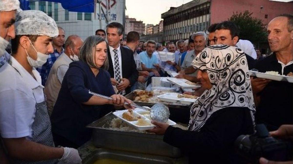 Diyarbakır Büyükşehir Belediyesi’nin iftar çadırına dün yapılan saldırının ardından bugün kentteki sivil toplum örgütleri, dayanışma amacıyla saldırının olduğu Dağkapı Meydanı’nda iftar yemeği verdi.Diyarbakır Büyükşehir Belediyesi’nin iftar çadırına dün yapılan saldırının ardından bugün aralarında Ticaret ve Sanayi Odası, DİSİAD, Esnaf ve Sanatkarlar Odası, Tabip Odası, mühendis odaları gibi kentteki 100 kadar sivil toplum kuruluşu ortak tavır sergiledi.Yenişehir ilçesinde bulunan Dağkapı Meydanı'nda tahrip edilen çadır Büyükşehir Belediyesi tarafından yeniden kurularak yemekler dağıtılırken, Büyükşehir Belediyesi Eş Başkanları Gültan Kışanak ve Fırat Anlı, Kayapınar, Sur ve Bağlar ve Yenişehir belediyesi eş başkanları da Dağkapı Meydanı’na geldi.HDP Diyarbakır Milletvekili Nursel Aydoğan, DBP İl Eş Başkanı Zübeyde Zümrüt, sanatçılar ve din adamları da iftar yemeğine katılırken, Kışanak, Anlı ve ilçe belediyeleri eş başkanları da yemek tezgahının arkasına geçerek, vatandaşlara iftar yemeği dağıttı.Yemeğe katılan din adamları adına Kur’an-ı Kerim okuyan ve ardından Kürtçe konuşma yapan bir hoca, Ortadoğu’da İslam adına cinayetler işlendiğini belirterek, kutsal kitap Kur’an-ı Kerim’de en büyük suçlardan birinin insan öldürmek olduğunu ve bunu yapanların müeyyidesinin cehennem olduğunu söyledi.Daha sonra Kürtçe konuşan Demokratik Bölgeler Partisi (DBP) Diyarbakır İl Eş Başkanı Zübeyde Zümrüt, Büyükşehir Belediyesi’nin iftar çadırına yapılan saldırıyı kınayarak, “Herkesin bilmesi gerekiyor ki bu şehir sahipsiz değildir. 1990’lı yıllarda olmadıklarını ve bunun böyle bilinmesi gerektiğini” söyledi."Biz 2014 yılındayız, Kürt halkı artık örgütlüdür" diyen Zümrüt, “Bugün Diyarbakır gibi bir yerde ellerine satırlar alıp bu halka saldırıda bulunanlar, bu halkın iradesine saldırırsa kimse bu halkı kızdırmasın. Eğer bu halk bir kızarsa hiçbir güç bu halkın önünde duramaz” dedi.Amacın gündemi saptırmak olduğunu söyleyen Zümrüt, “Çeteler, Kürtlerin, Türkiye’nin gündemini değiştirmek isteyenler kusura bakmasınlar. Kürtlerin ve Ortadoğu halklarının gündemi Kobani’dir, Rojava’dır, Kürtlerin başarısıdır” diye konuştu.Karanlık güçlerin arkasında kim olursa olsun halkın iradesini yok sayamayacağını belirten Zümrüt, “Bu oyunları yapmak isteyenler bunu bilmeliler ki Diyarbakır halkı uyumuyor. Artık 93-94’lerdeki gibi faili meçhul tarzı ellerinde satırlarla insanların arkasından saldırırlarsa bunu asla kabul etmeyeceğiz ve Diyarbakır halkı kabul etmeyecek” şeklinde konuştu.Ezanın okunmasından sonra aralarında Suriye’den gelen mültecilerin de bulunduğu 1000 kişi iftar yemeği yedi.Yemek sonrası vatandaşlarla sohbet eden Kışanak, Anlı ve beraberindeki partililer daha sonra çadırdan ayrıldılar.