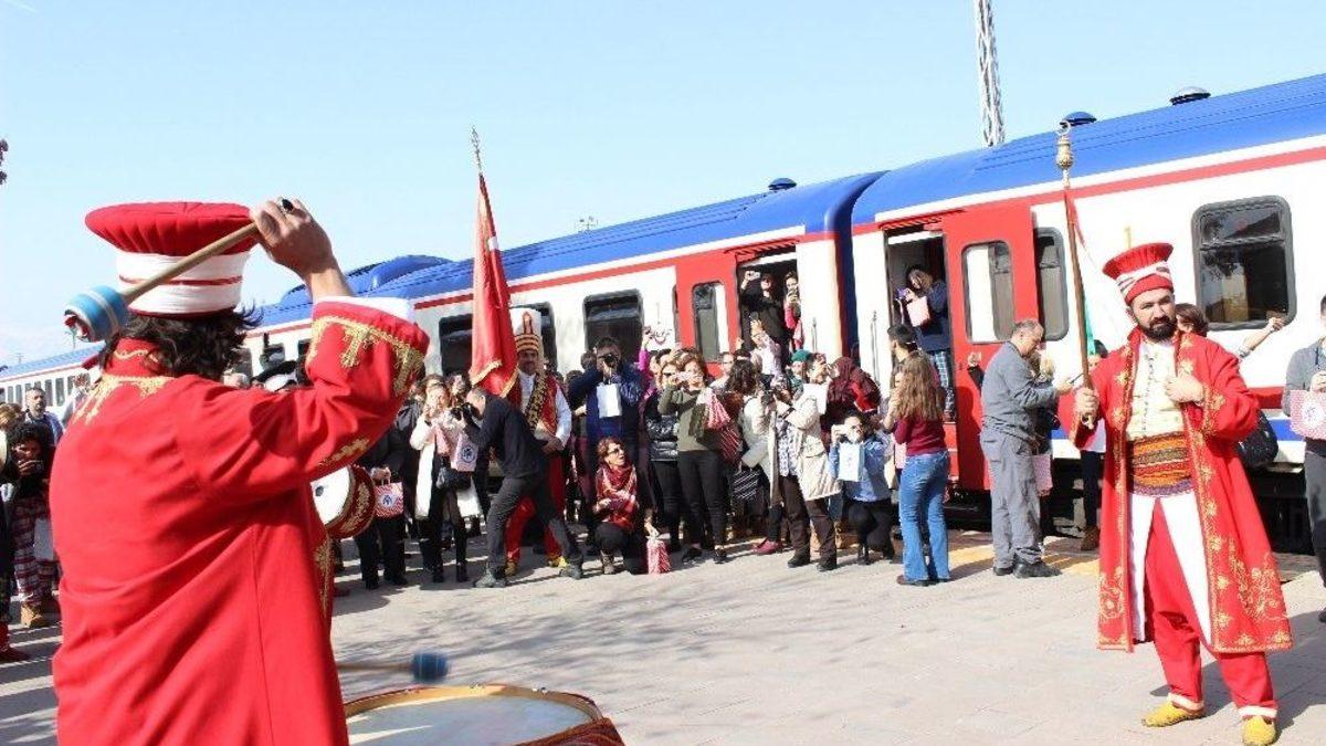 Türkiye’nin 81 ilinden Kars’a gitmek üzere tren yolculuğuna çıkan yaklaşık 400 kişi Erzincan garında Erzincan Belediyesine ait Mehter Takımının coşkulu gösterisiyle karşılandı.Doğu Ekspresi yolculuğuna çıkmak üzere Türkiye’nin 81 ilinden Ankara’da buluşan insanlar, yaklaşık 26 saat süren uzun tren yoluculuklarında Erzincan da sürpriz bir gösteriyle karşılandılar. Erzincan Belediyesine ait Mehter Takımı, Erzincan garına ulaşan yolculara coşkulu bir gösteri sunarak,750 yolcuya tulum peyniri ve Erzincan tanıtımına ilişkin kataloglar hediye etti.Doğu Ekspresi yolculuğuna çıkan yolcular Erzincan da karşılaştıkları sürpriz gösteriyi cep telefonları ile kayır altına alarak, Mehter Takımının gösterisine eşlik ettiler.Doğu Ekspresi yolculuğunun çok keyifli olduğunu ifade eden yolcular Erzincan da karşılaştıkları gösteri karşısında mutlu olduklarını belirterek, Erzincan Belediyesine teşekkürlerini ilettiler.Erzincan Belediye Başkanı Cemalettin Başsoy, Erzincan Tren Garı İşletme Müdürü Kenan Aydın tarafından hediye edilen tulum peynirini alan 22010 sefer sayılı yolcular yapılan gösterilerin ardından trene tekrar binerek yolculuklarına devam ettiler.