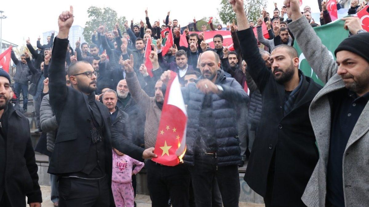 Sloganların da atıldığı basın açıklamasında dua gerçekleştirildi. Son olarak da temsilen Çin bayrağı da yakıldı.