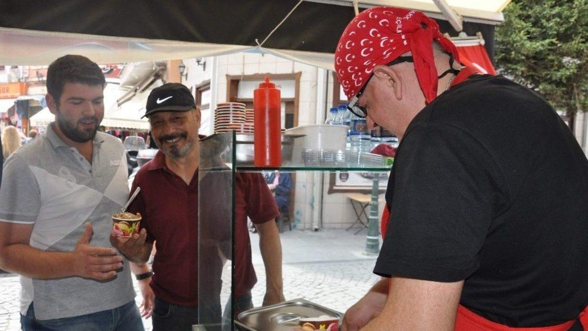 Eskişehir’de vatandaşlar hem tatlı ihtiyacını gidermek hem de serinlemek için dondurmalı irmik helvasını tercih ediyor.Yaz aylarında vatandaşlar serinlemek için çeşitli çareler ararken, kimi de soğuk yiyeceklerle serinlemeye çalışıyor. Eskişehir’de bir helvacı, yaptığı dondurmalı irmik helvasıyla vatandaşların hem tatlı ihtiyacı gideriyor hem de bir nebze de olsa serinlemesini sağlıyor. Helvacı Cevher Mahmutlar, irmik helvasının zaten hafif bir tatlı olduğunu, dondurma ile de karıştırınca farklı bir lezzete büründüğünü söyledi. Yaz aylarında en çok tercih edilen ürünlerden birinin de dondurmalı irmik helvası olduğunu belirten Mahmutlar, “İlk önce irmik helvasının malzemesini eksiksiz katacaksın, güzelce kavurup karıştıracaksın, birde bu sıcak havaların vazgeçilmezi dondurmayı katıp hem tatlı yiyip hem de dondurmasıyla serinleyeceksin. Hem helva hem de dondurma kardeş gibidir. Kardeşler bir araya geldiği zaman çok güzel oluyor. Helva zaten ağır bir tatlı değil, dondurmada helvanın içindeki şekeri de aldığı için bu da insanlara bir ferahlık veriyor. ‘Bugün küçük bir çocuk bile baba ben dondurmalı helva istiyorum’ diyor. Bu dondurmalı irmik helvası ilk defa Denizli bir girişimci tarafından üretildi. Türkiye’de de yaygınlaşmaya başladı. Bizde Maraş usulü dondurmayla karıştırarak vatandaşlara sunuyoruz” dedi.Vatandaşların hem tatlı hem de serinlik hissi verdiğini vurgulayan Mahmutlar, ”Bu sıcak havalarda yemek yiyemiyorsun, bol bol su içiyorsun, sıvı kaybı yaşanıyor, bu helvalı dondurma da insana tat, lezzet veriyor, susuzluğunu ve açlığını gideriyor. Vatandaşların hem tatlı ihtiyacını gideriyor hem de serinletiyor. 2 buçuk liralık dondurma 2 buçuk liralık helva katarak müşterilerimize sunuyoruz. İnsanlarda dondurmalı helvadan çok memnun, beğeniyorlar. Yaz aylarında en çok tüketilen ürünlerden biridir” ifadelerini kullandı.Vatandaşlar da, zaten irmik helvasını çok beğendiklerini ve devamlı aldıklarını, yaz aylarında da dondurma ile karışınca farklı lezzete büründüğü, dondurmalı irmik helvasının bir nebze de olsa serinlemeye yardımcı olduğunu belirtiler.