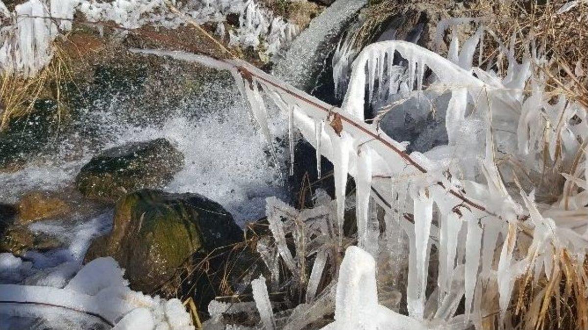 VAN (İHA) – Van’da etkisini gösteren dondurucu soğuklar, kartpostallık görüntüler oluşturdu.Kar yağışının ardından dondurucu soğuklar Doğu Anadolu Bölgesini etkisi altına almaya devam ediyor. Van’da mevsim normalinin altında seyreden hava sıcaklığı nedeniyle birçok dere yatağı ise dondu. Su ile buzun buluşması doğada seyri güzel görüntüler oluştururken, Van’ın çatısı olarak adlandırılan Erek Dağındaki su geçitlerindeki buz sarkıtları ise güzel görüntü oluşturdu.Meteorolojiden alınan bilgiye göre, bölgede bir süre yağış gözükmediği ve soğukların artacağı kaydedildi.